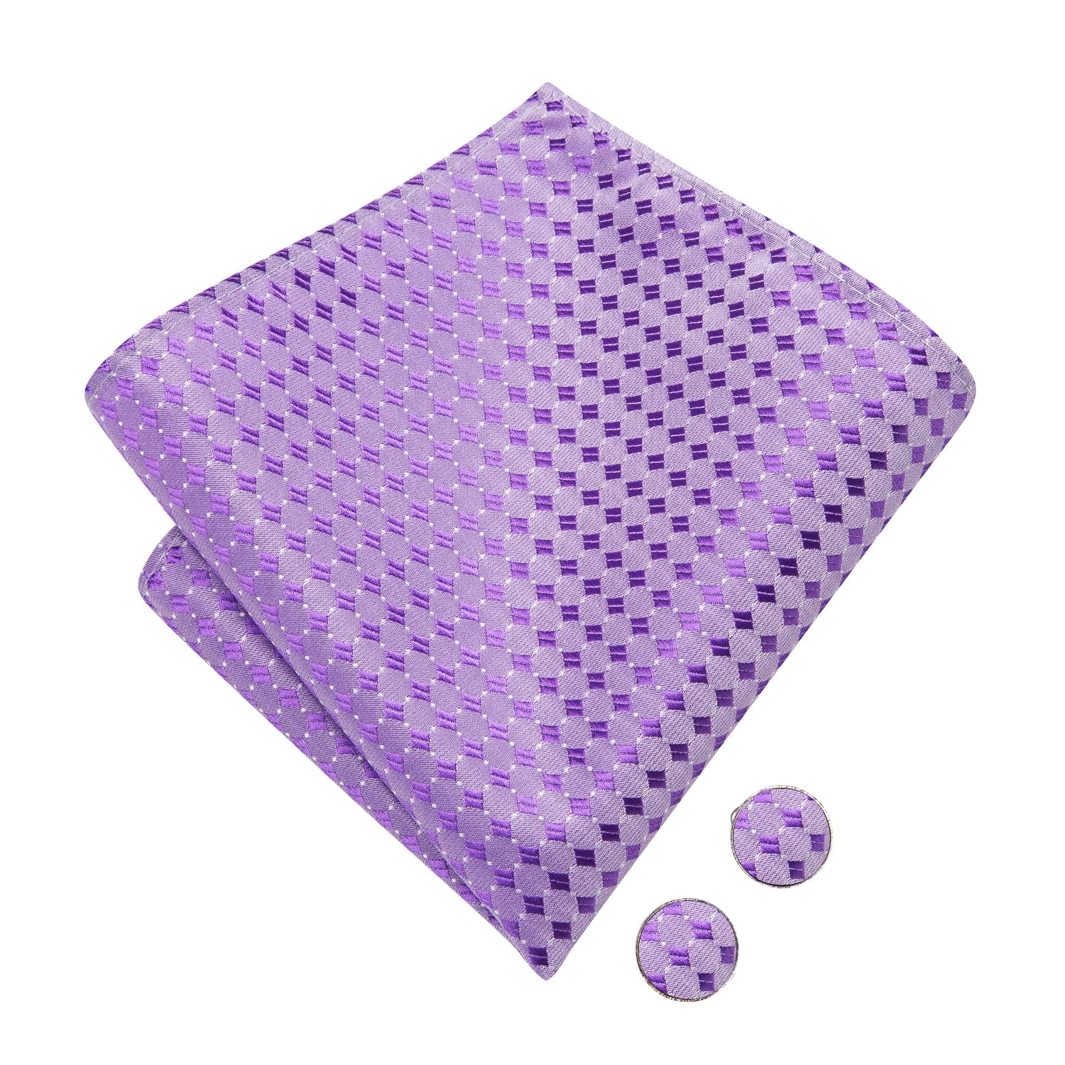 Hi-Tie Lavender Purple Bow Tie Men's Geometric Tie Hanky Cufflinks Set