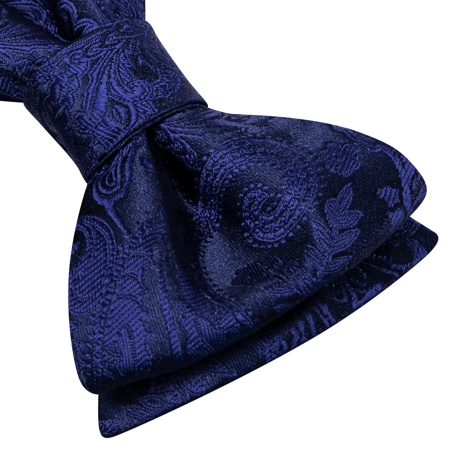 Hi-Tie Black Blue Paisley Pre-tied Bow Tie Hanky Cufflinks Set