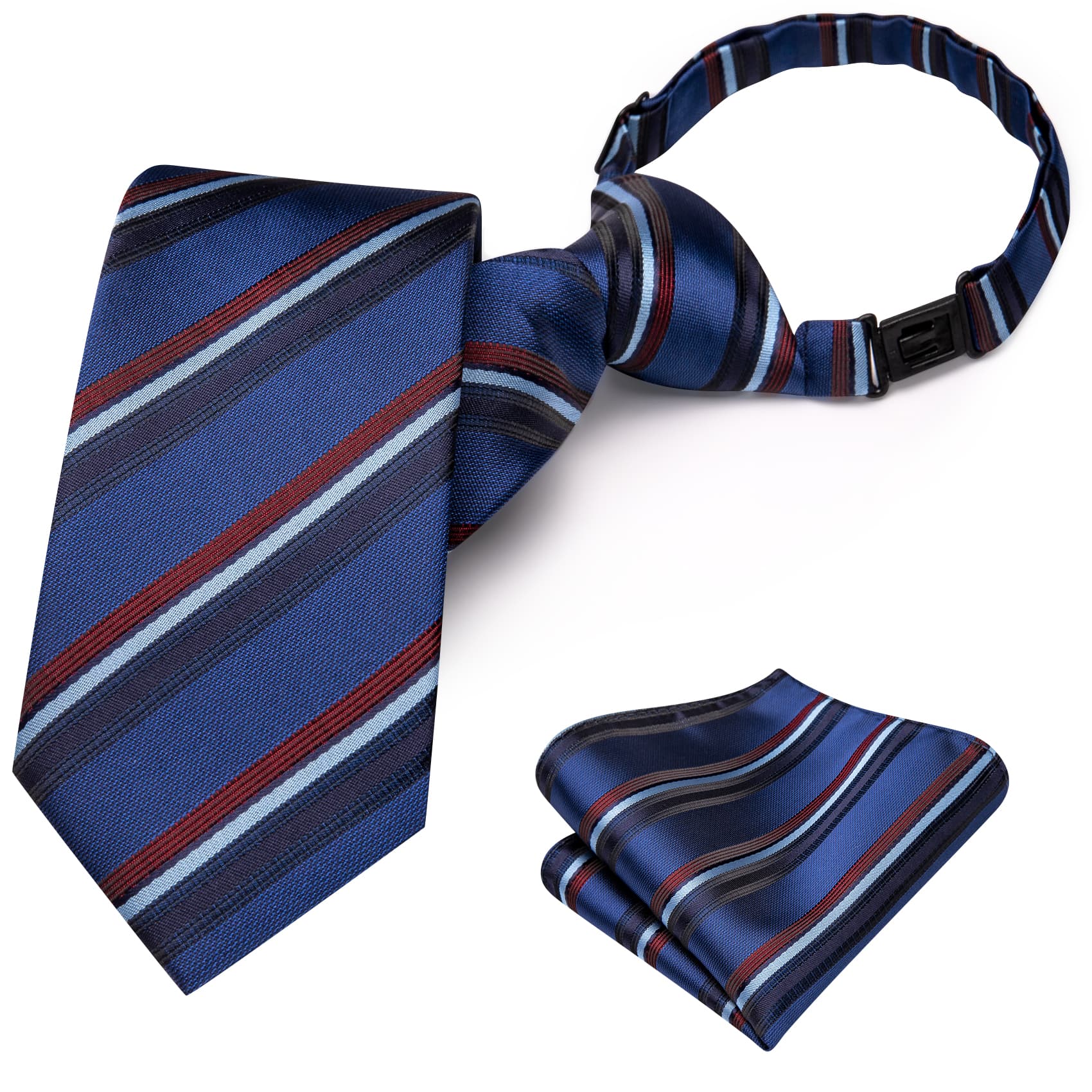 Hi-Tie Royal Blue Boys Necktie Red Stripes Adjustable Tie Hanky Set