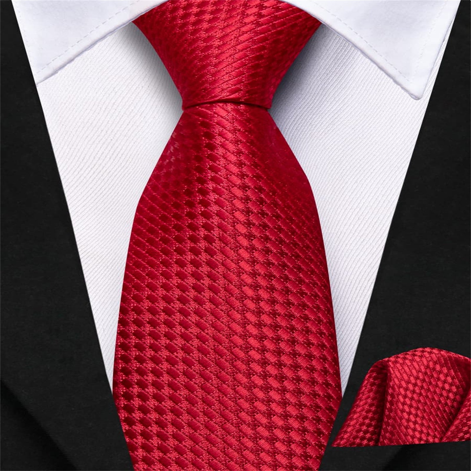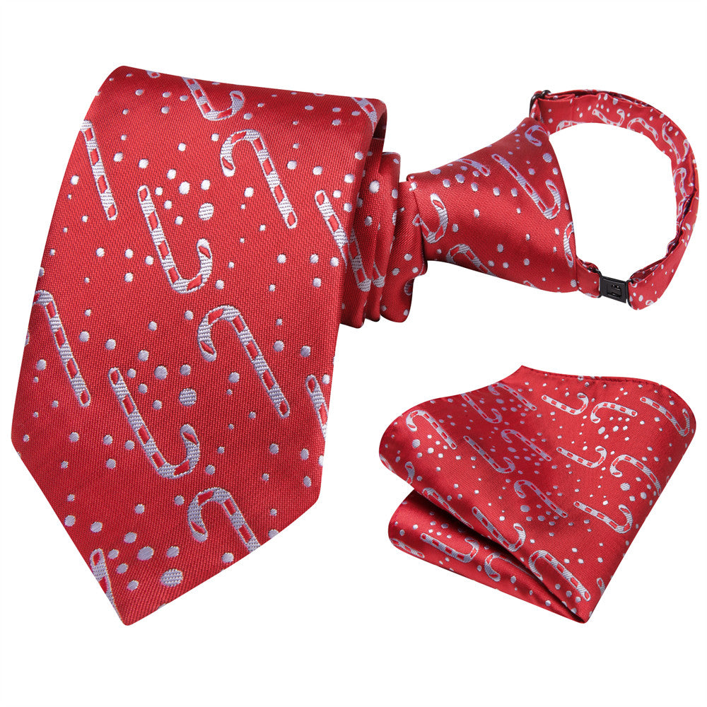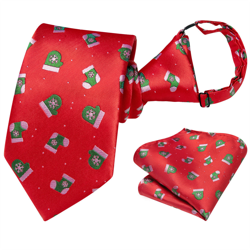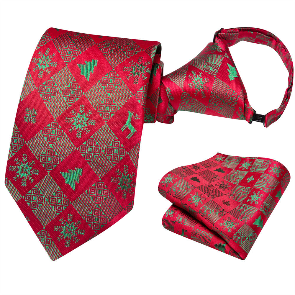Hi-Tie Pure Red Plaid Boys Pre-tied Adjustable Tie Pocket Square