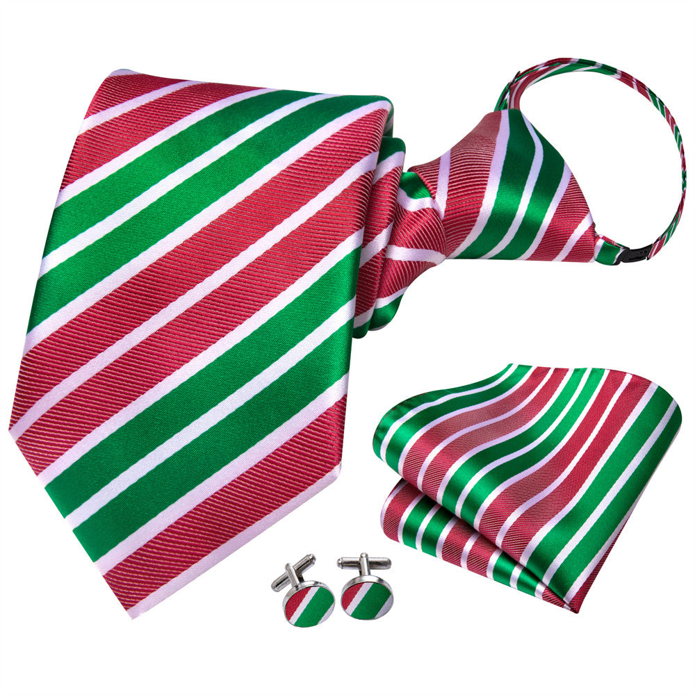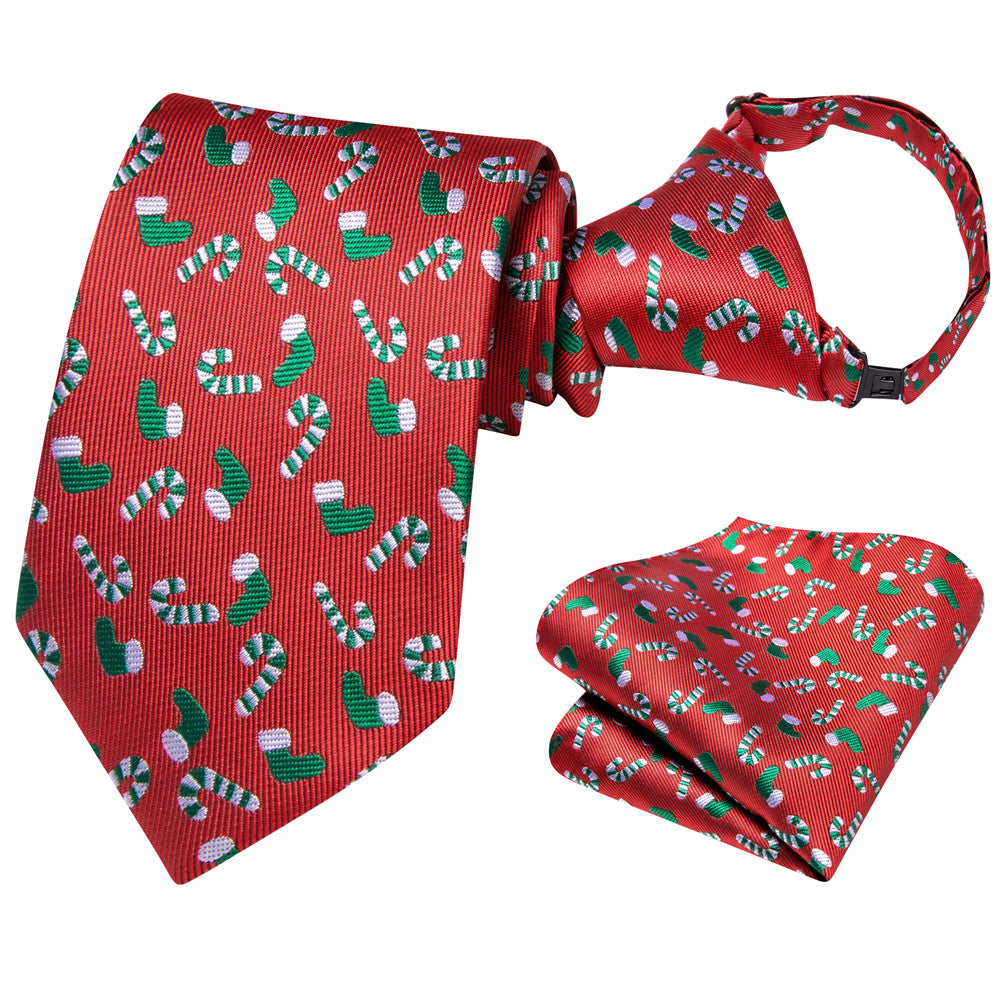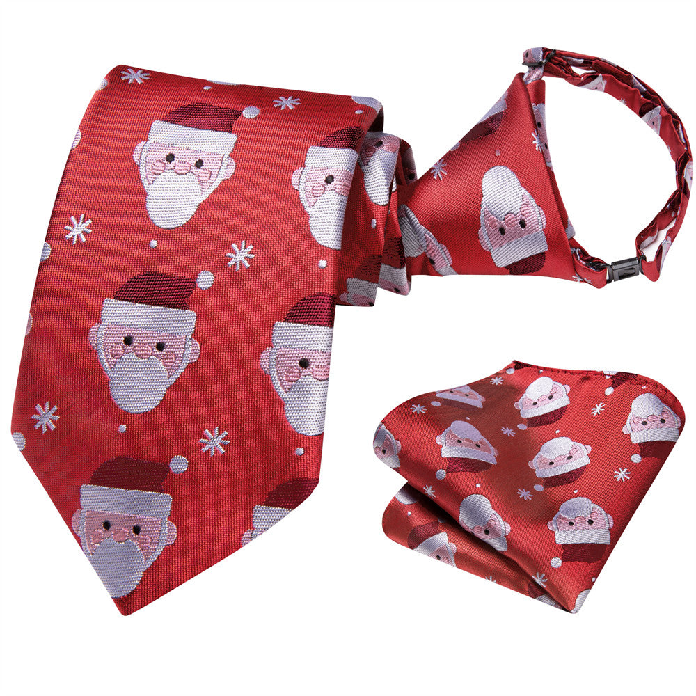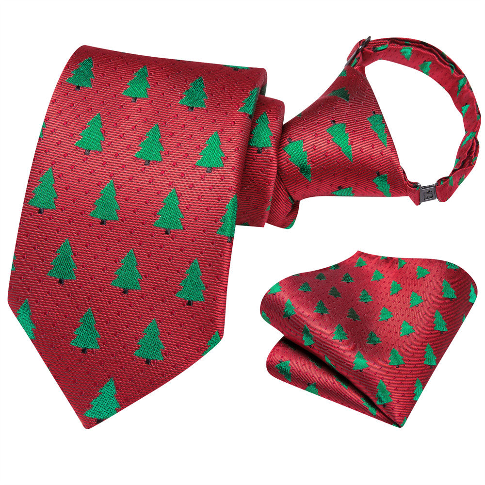 Hi-Tie Pure Red Plaid Boys Pre-tied Adjustable Tie Pocket Square