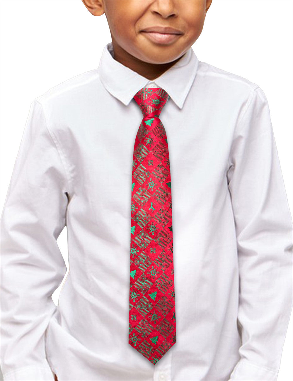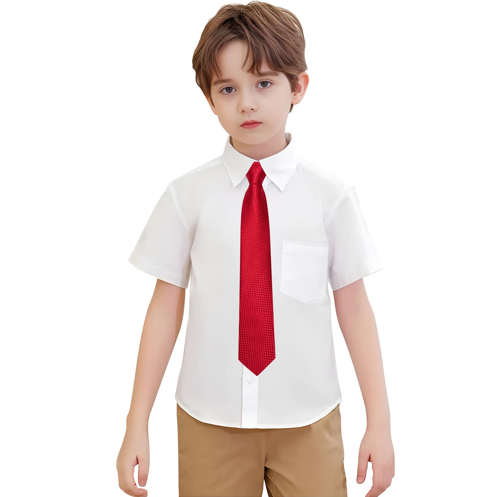 Red Plaid Children's Kids Boys Tie Pocket Square 6cm