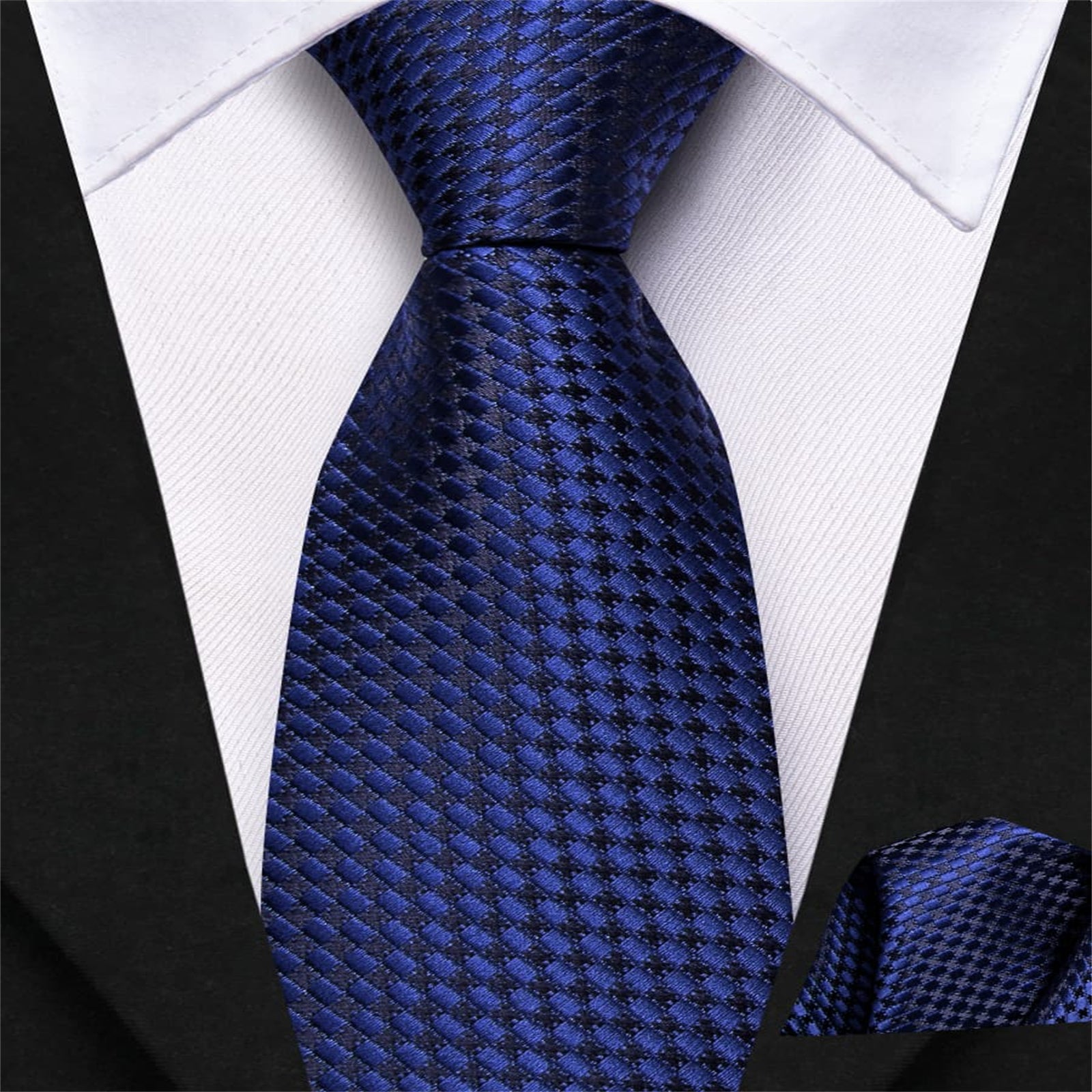 Hi-Tie Navy Blue Plaid Boys Pre-tied Adjustable Tie Pocket Square