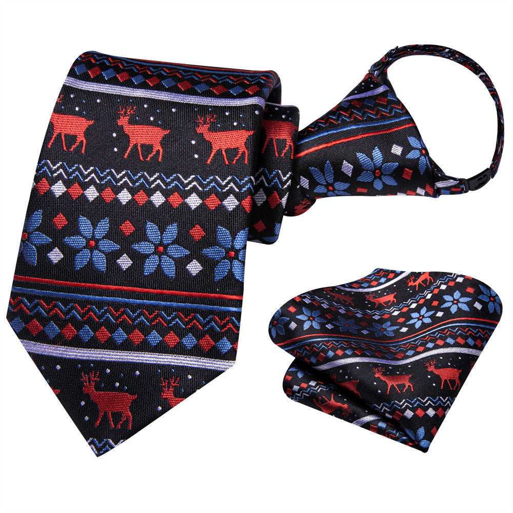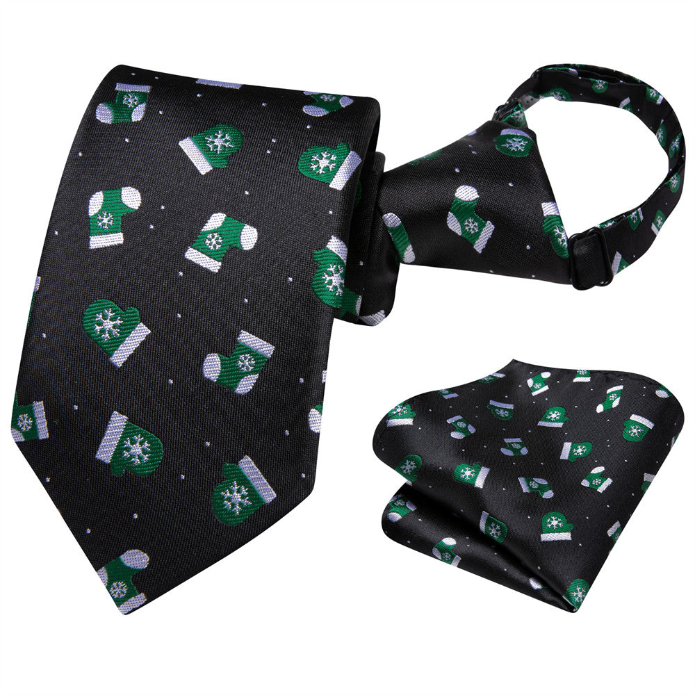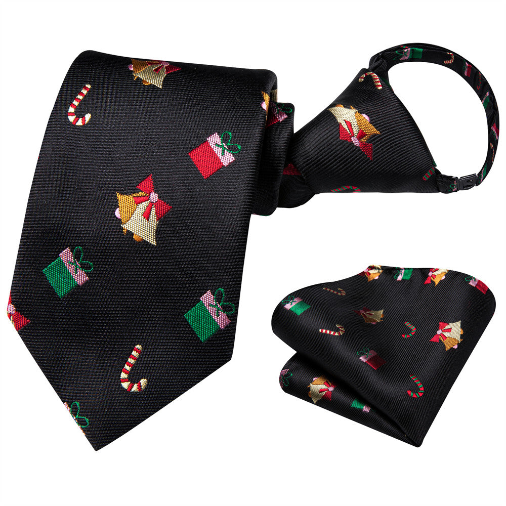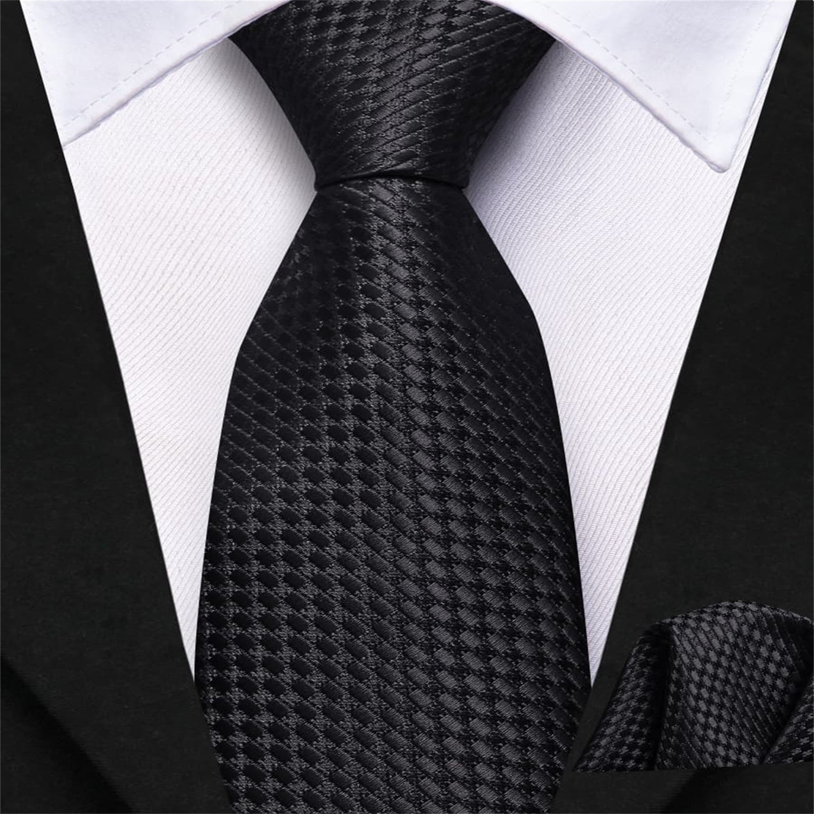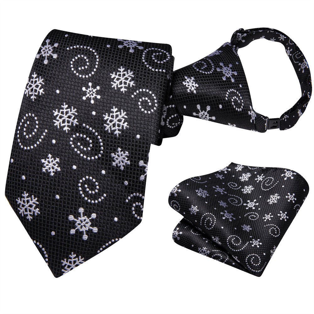 Hi-Tie Classic Black Plaid Boys Pre-tied Adjustable Tie Pocket Square