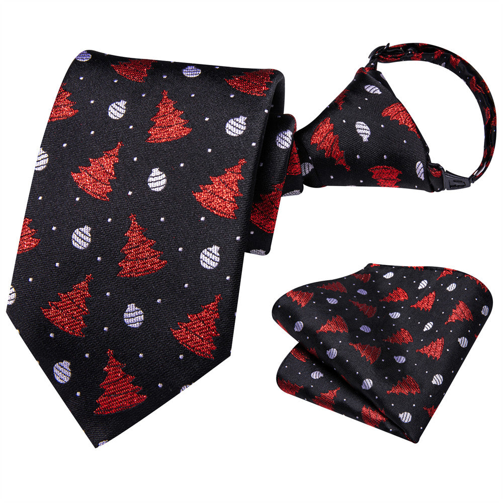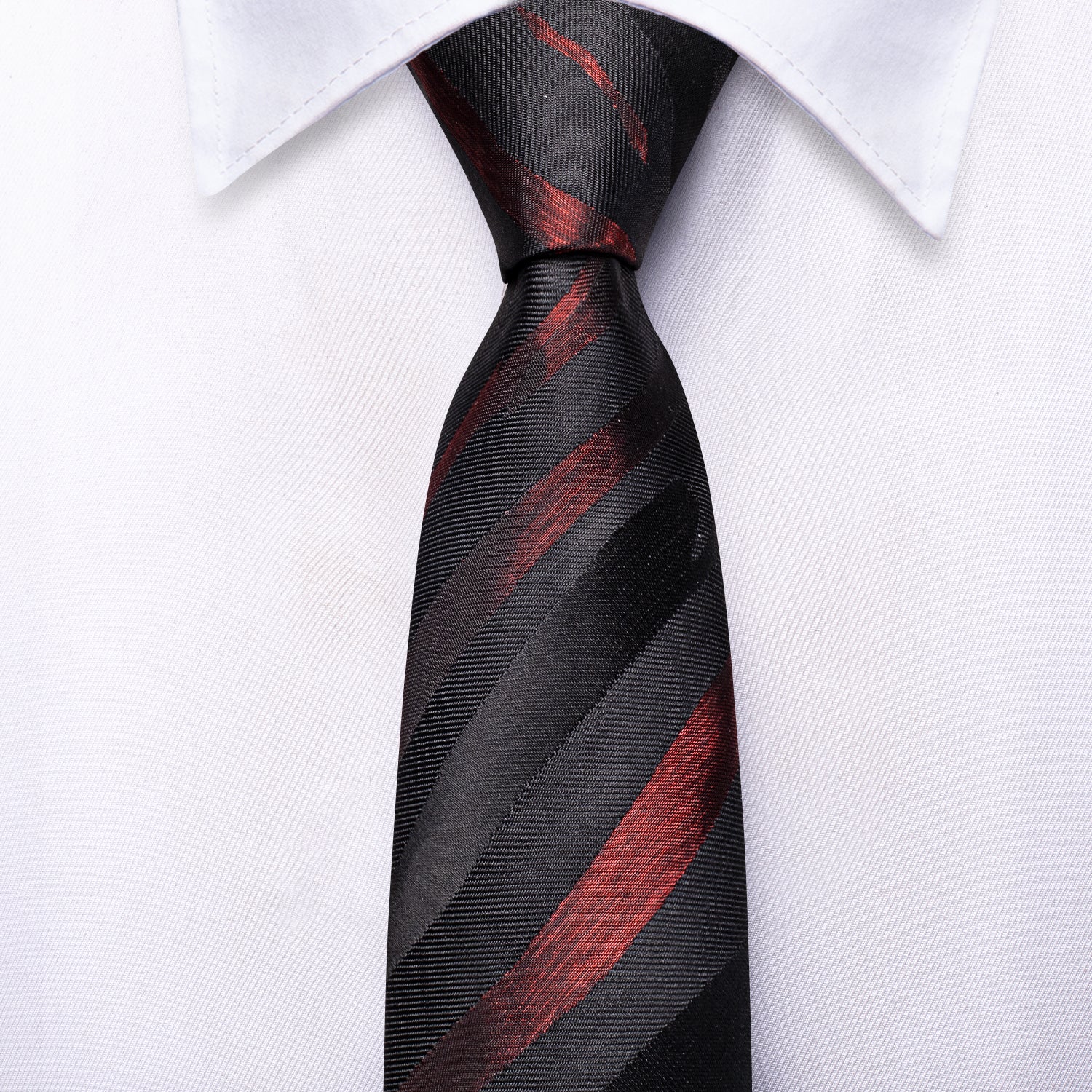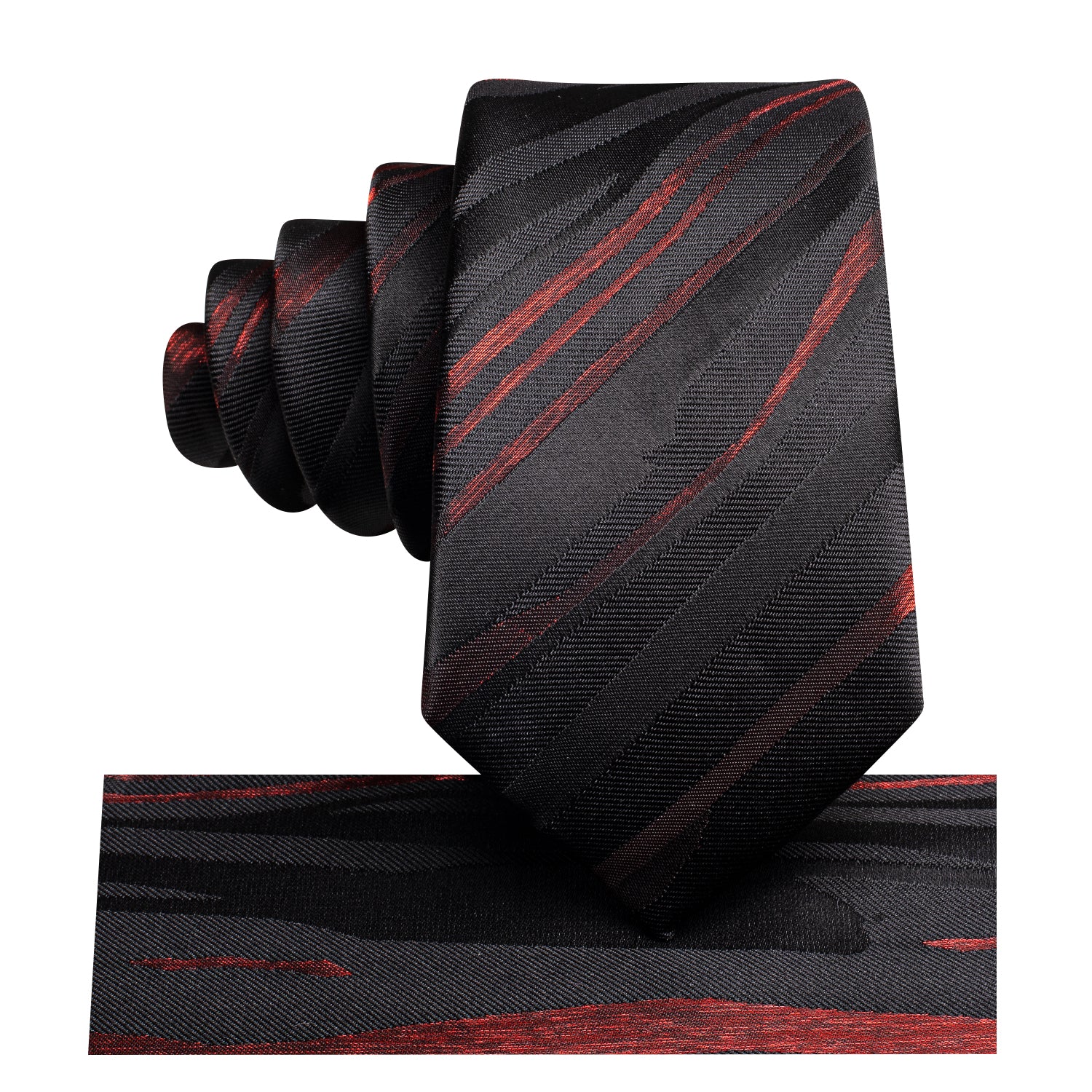 Hi-Tie Black Red Striped Children Ties Kids Boys Tie Pocket Square 6cm