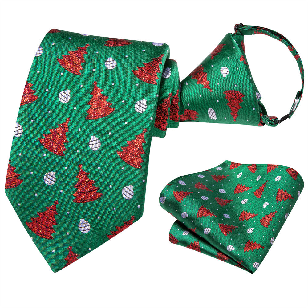 Hi-Tie Dark Green Plaid Boys Pre-tied Adjustable Tie Pocket Square