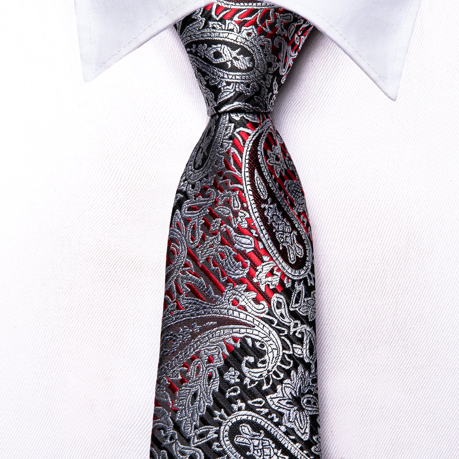 Silver Black Paisley Children's Kids Boys Tie Pocket Square 6cm