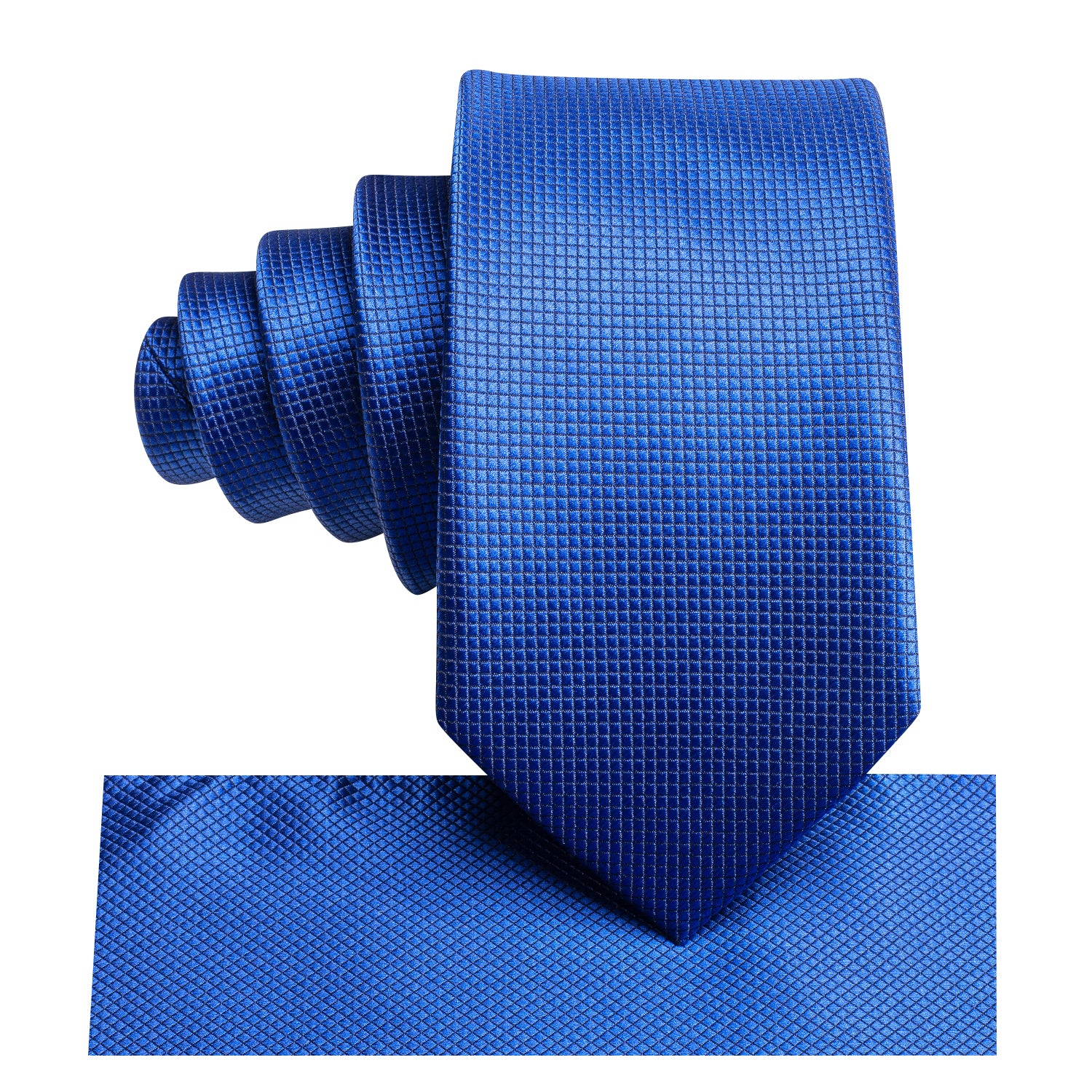 Royal Blue Plaid Children's Kids Boys Tie Pocket Square 6cm
