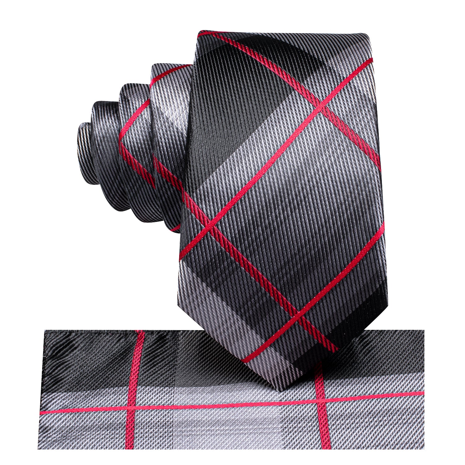 Grey Red Plaid Children's Kids Boys Tie Pocket Square 6cm