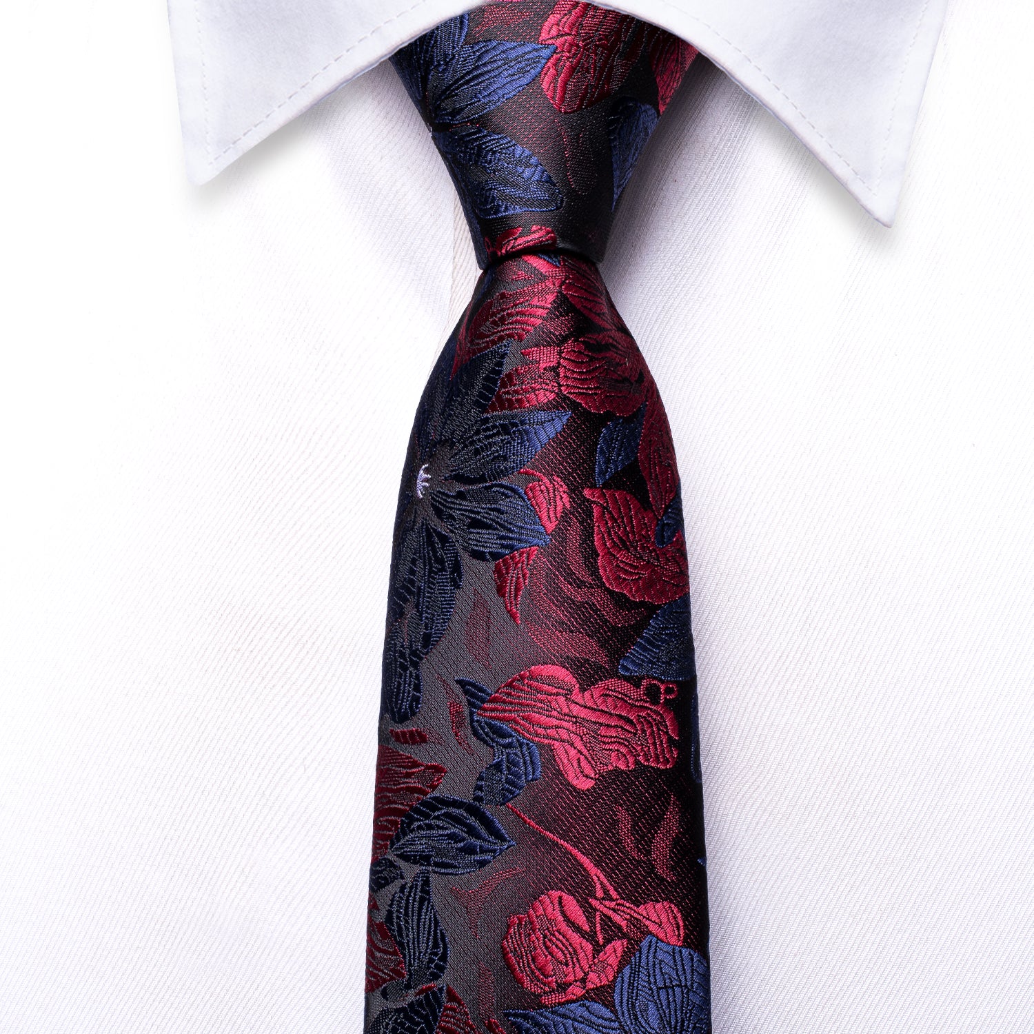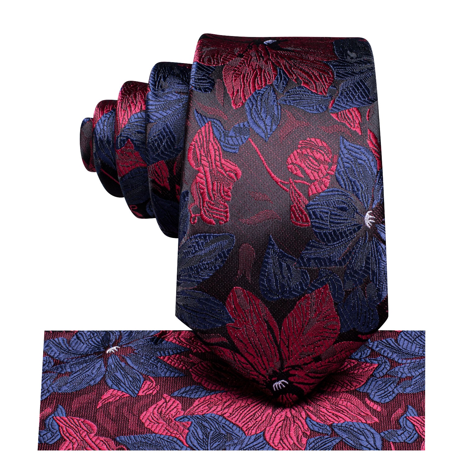 Hi-Tie Blue Red Floral Children's Kids Boys Tie Pocket Square 6cm