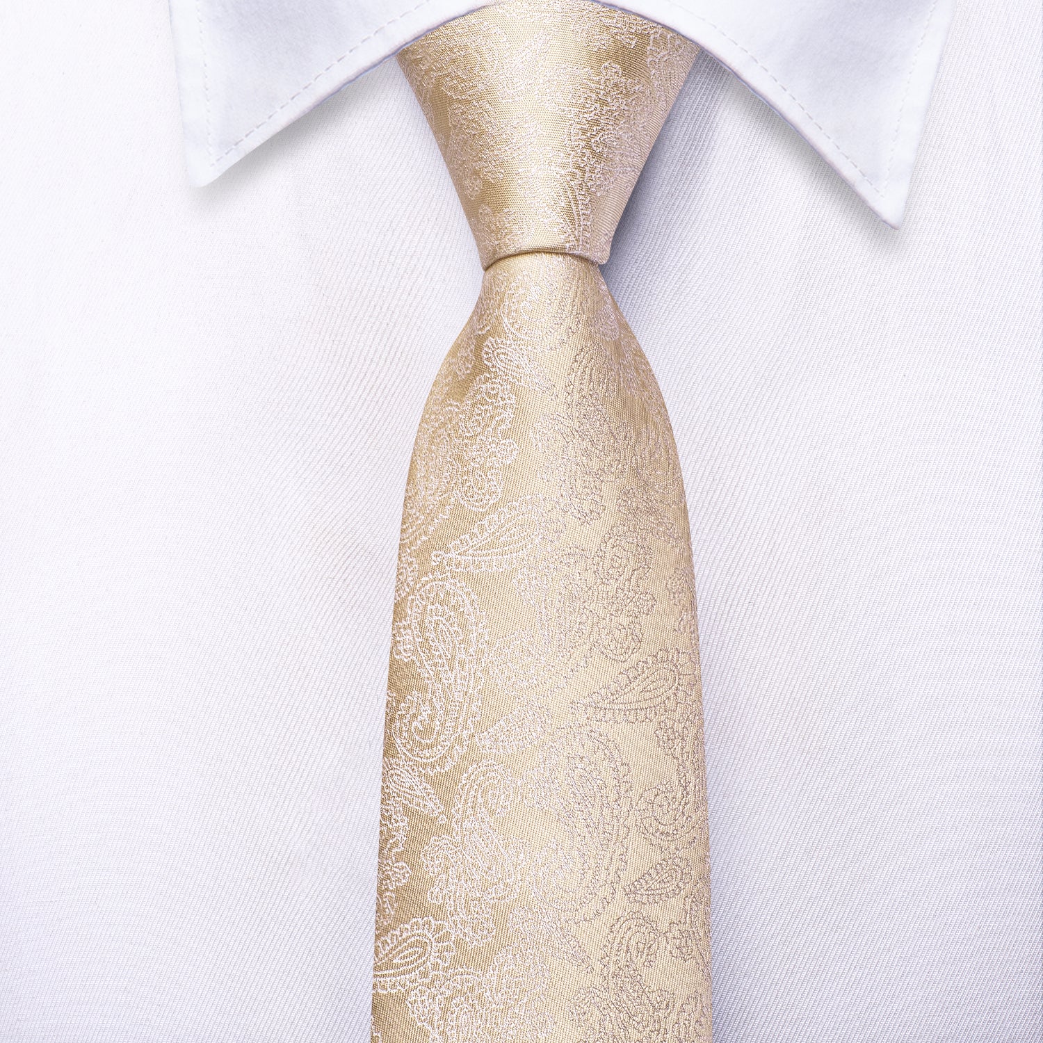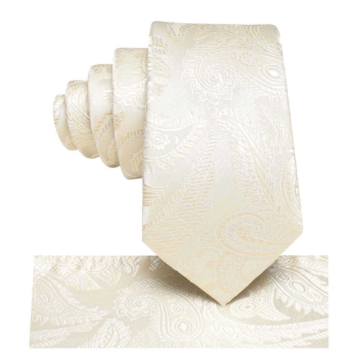 Ivory Beige Paisley Children's Kids Boys Tie Pocket Square 6cm