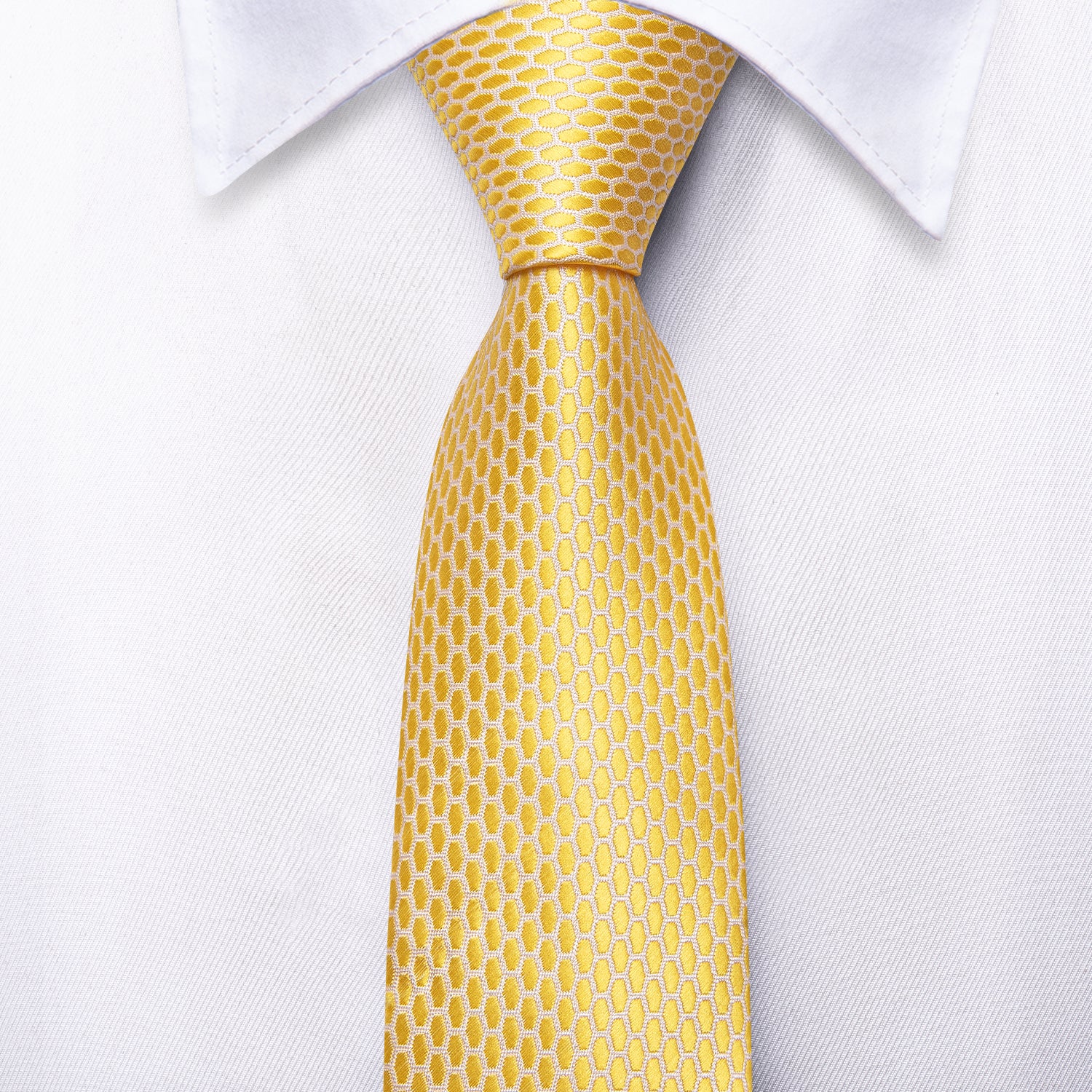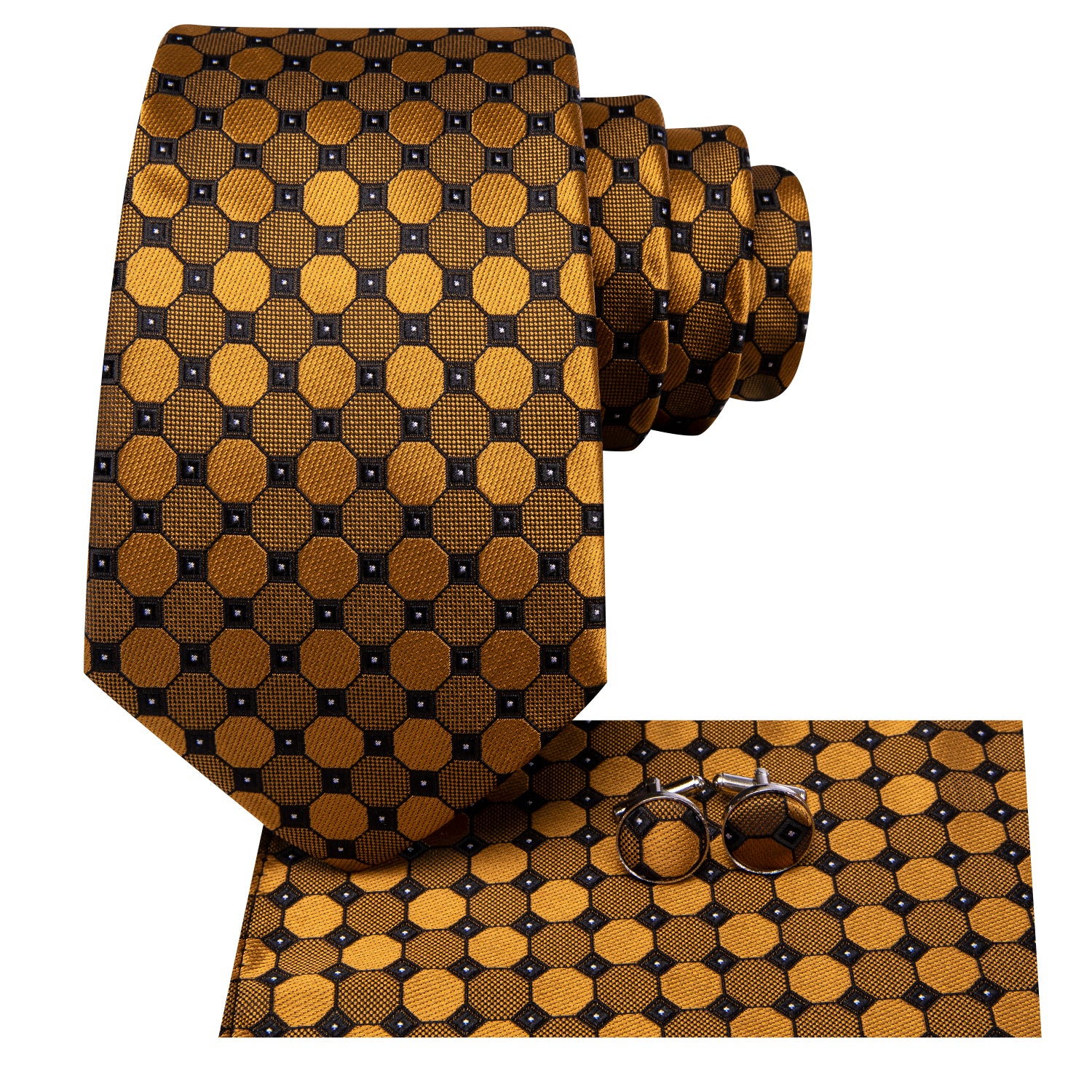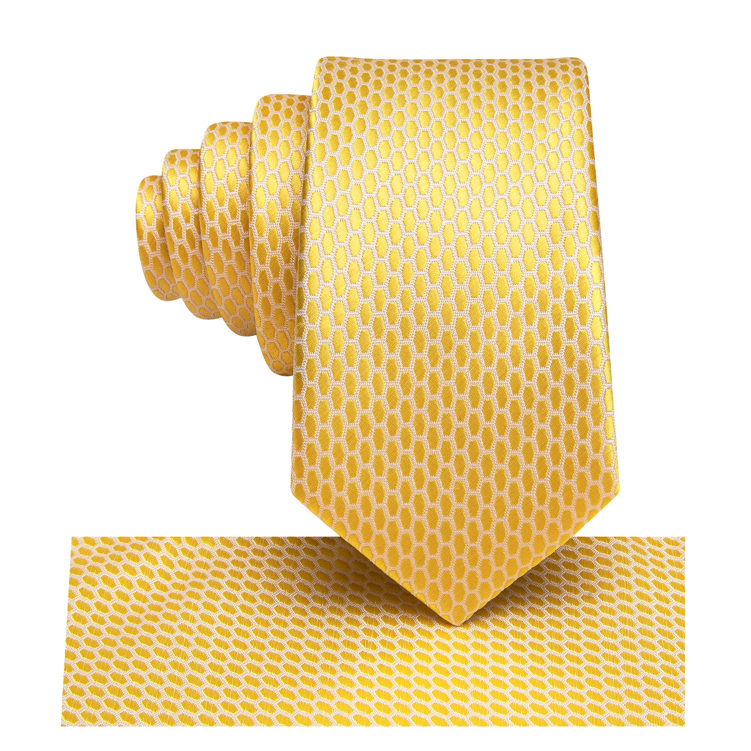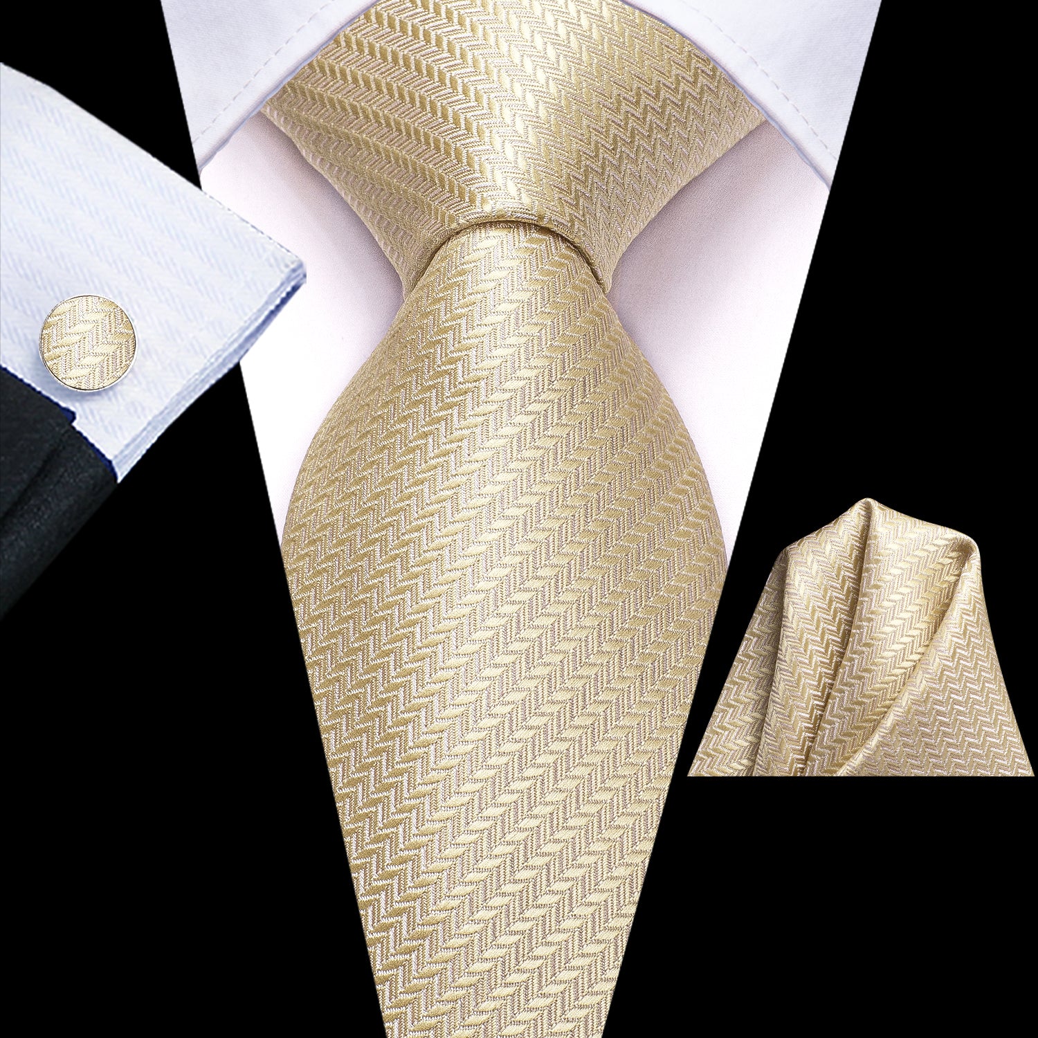 Hi-Tie Champagne Necktie Men Geometric Tie Pocket Square Cufflinks Set