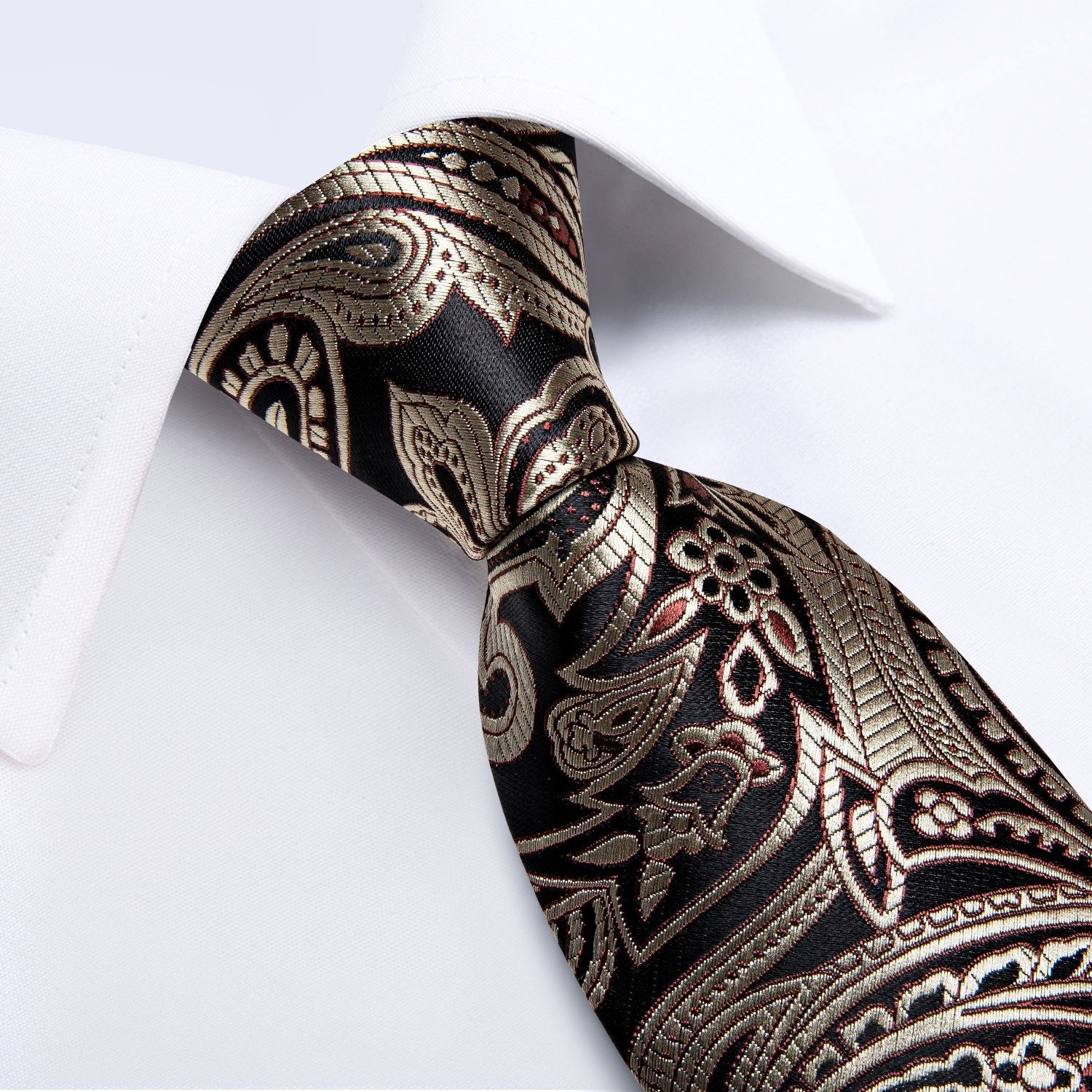 Hi-Tie Necktie Classic Brown Paisley Tie Pocket Square Cufflinks Set
