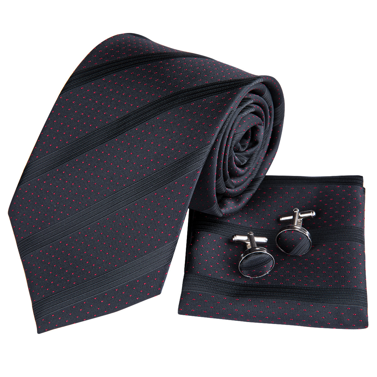 Hi-Tie Red Snow Polka Dot Tie Pocket Square Cufflinks Set