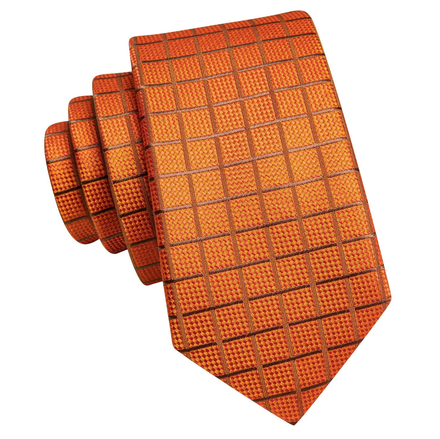 Hi-Tie Orange Tie Plaid Silk Men's Necktie Pocket Square Cufflinks Set