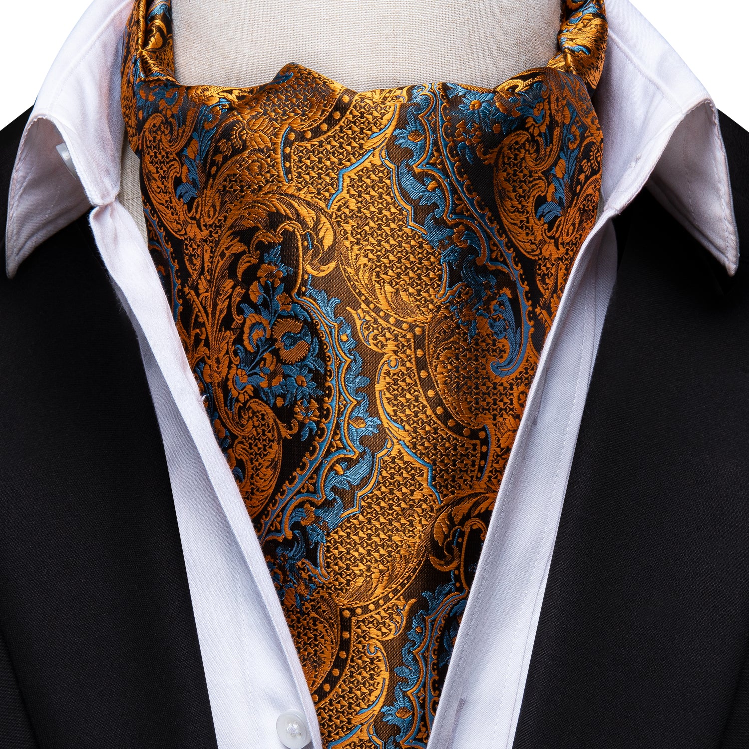 Luxury Gold Paisley Ascot Tie Pocket Square Cufflinks Set
