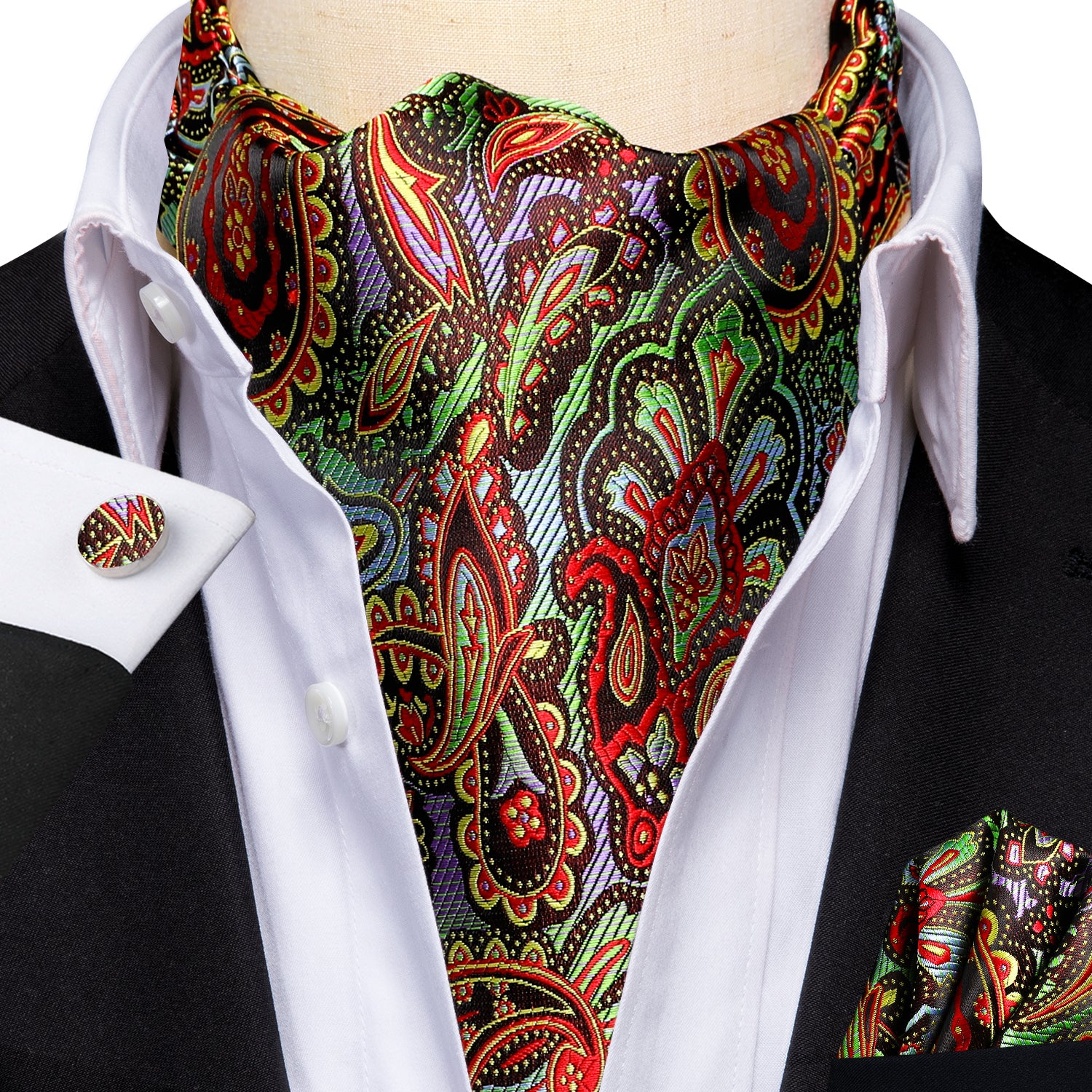 Colorful Paisley Ascot Pocket Square Cufflinks Set