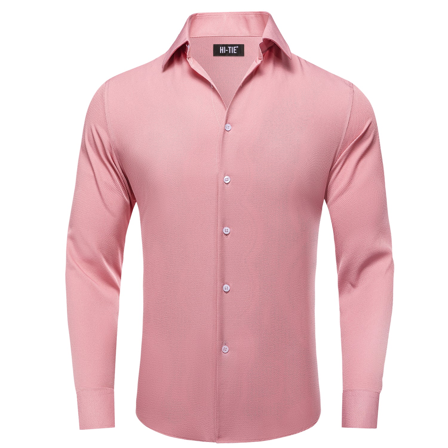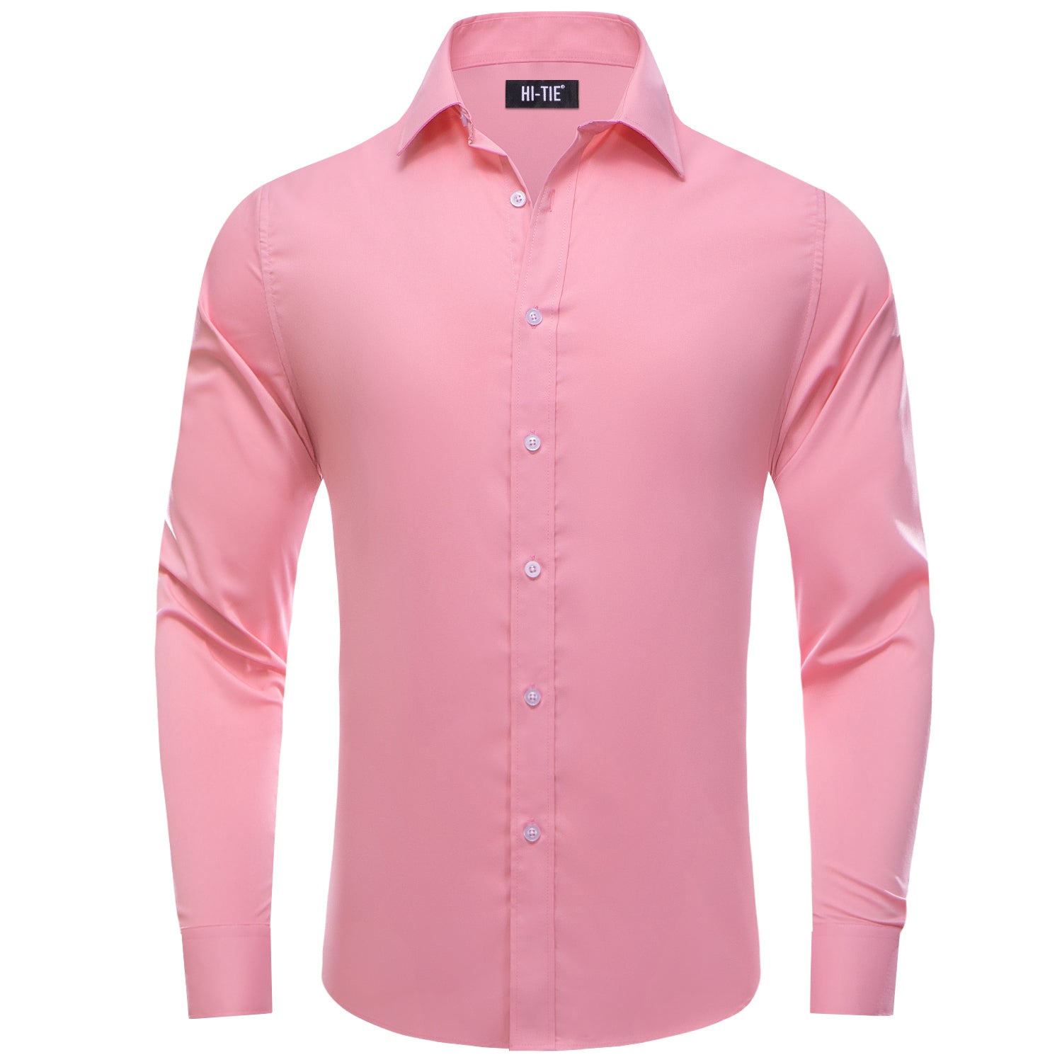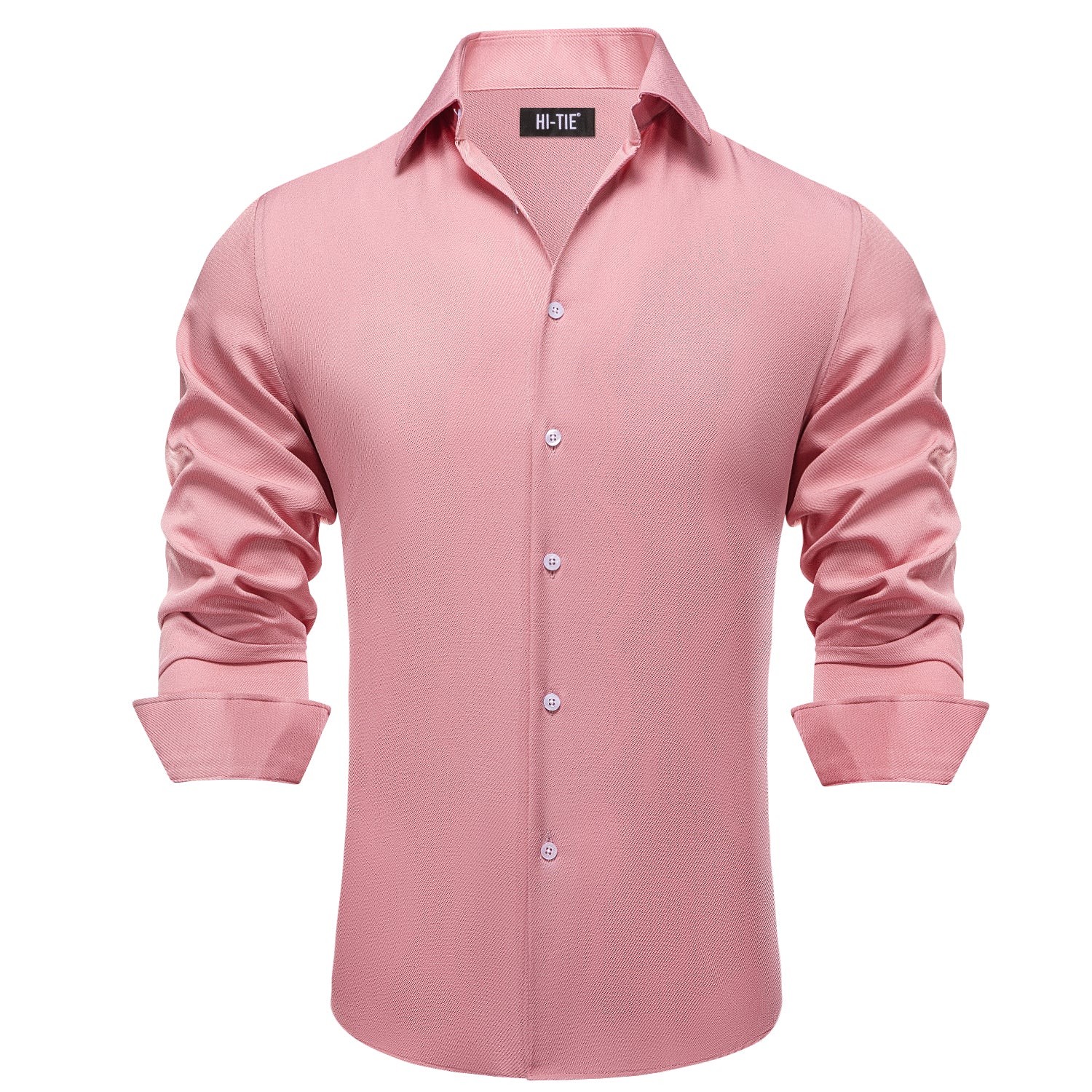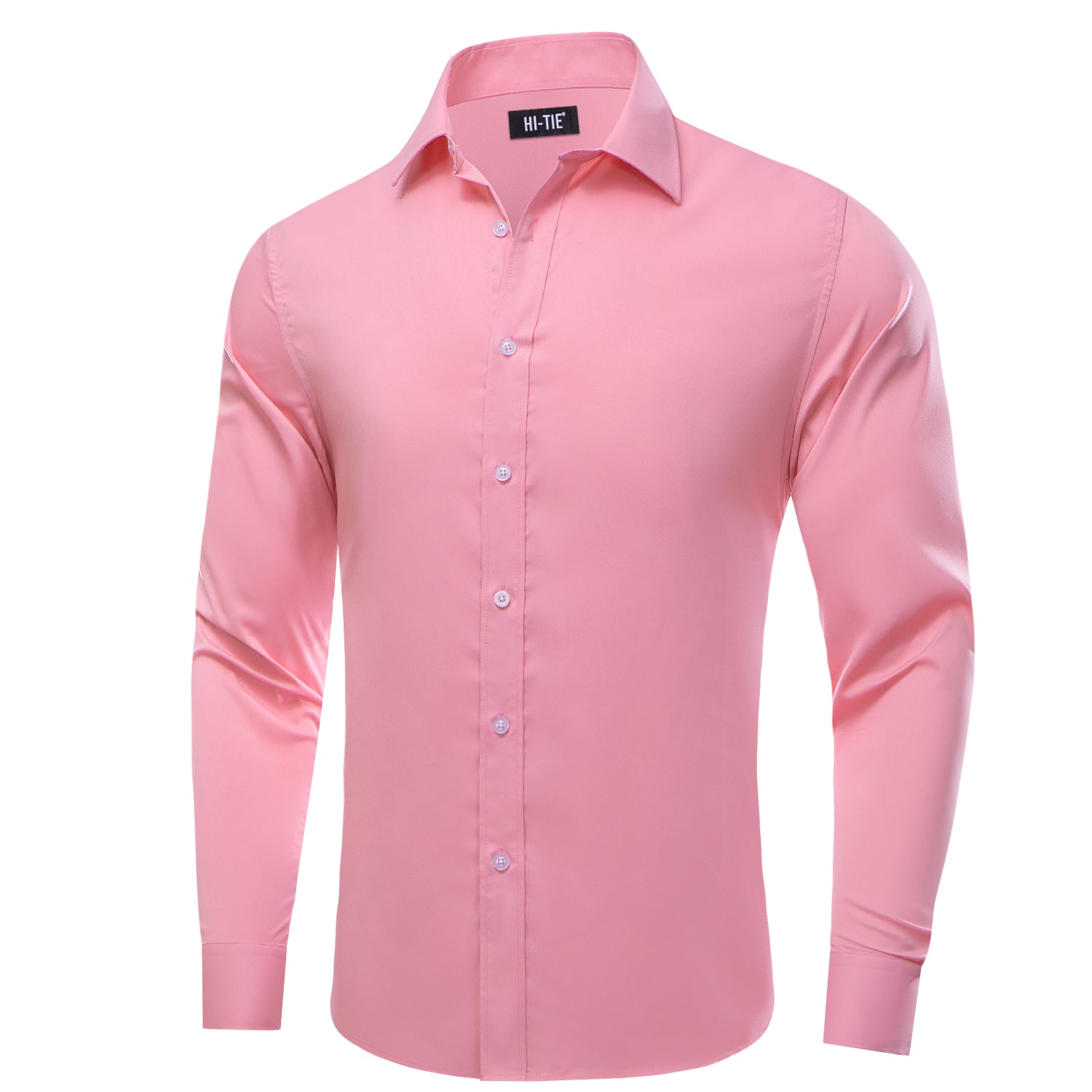 Hi-Tie Pure Pink Solid Business Men's Long Sleeve Dress Shirt