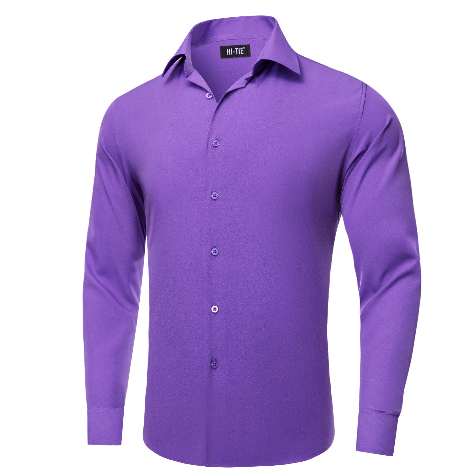 Purple Solid Four-way Stretch Fabric Men's Long Sleeve Shirt