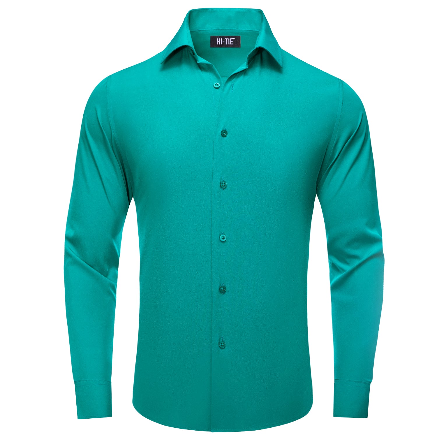 Emerald Green Solid Stretch Men's Long Sleeve Shirt