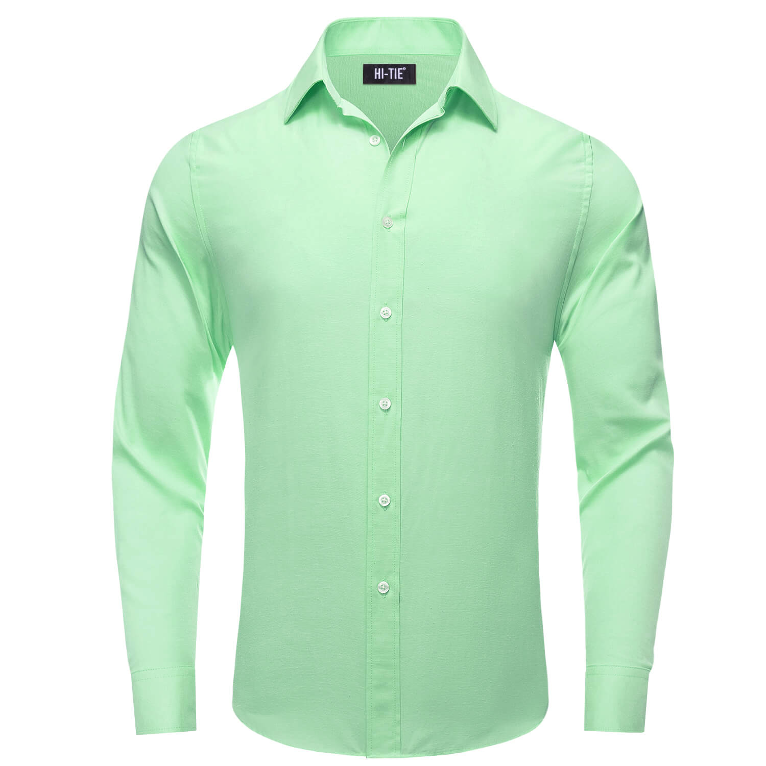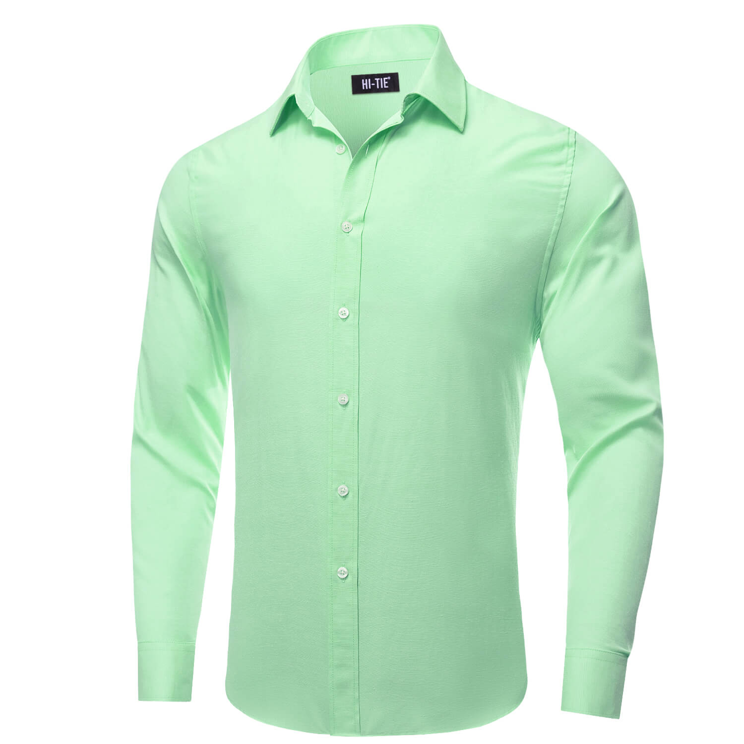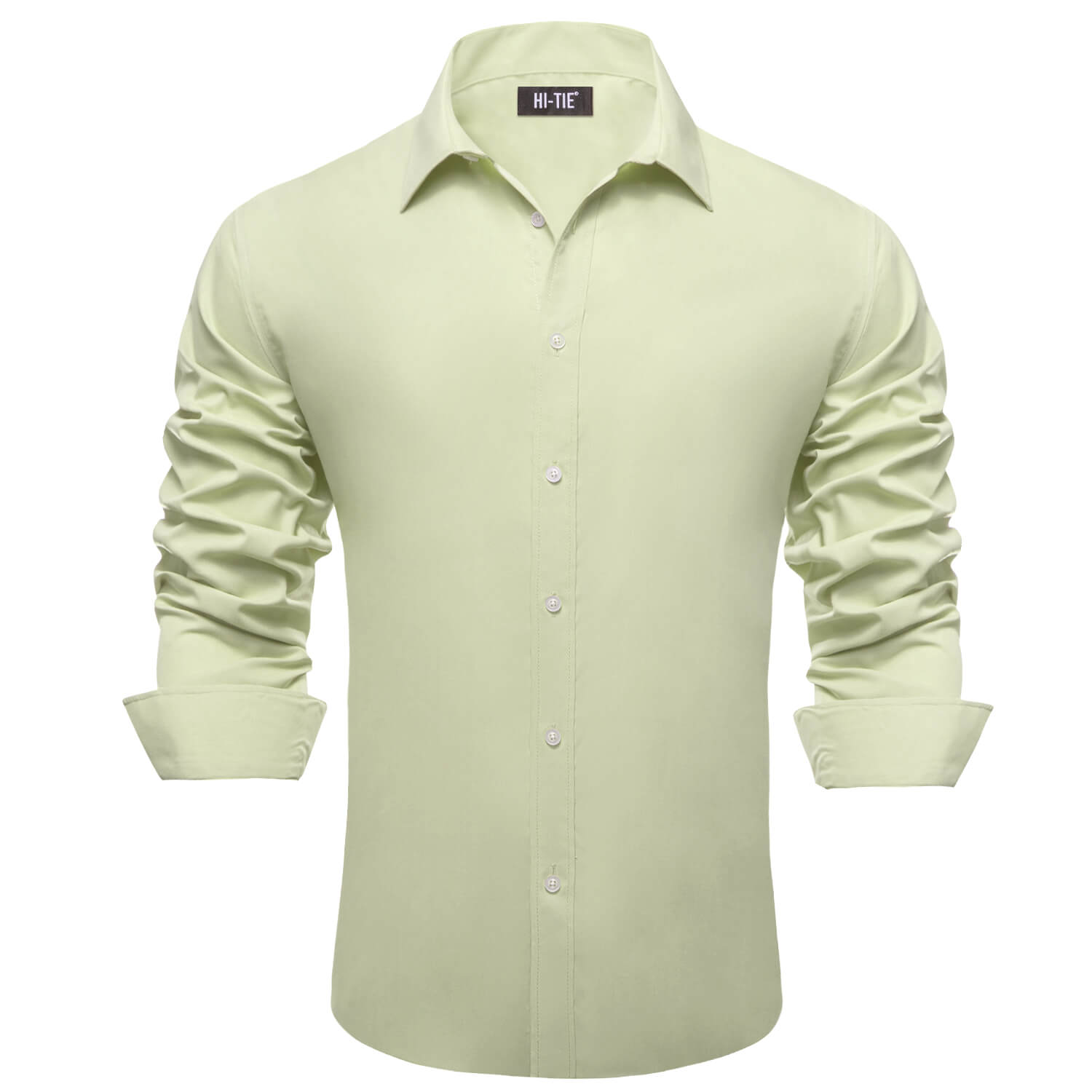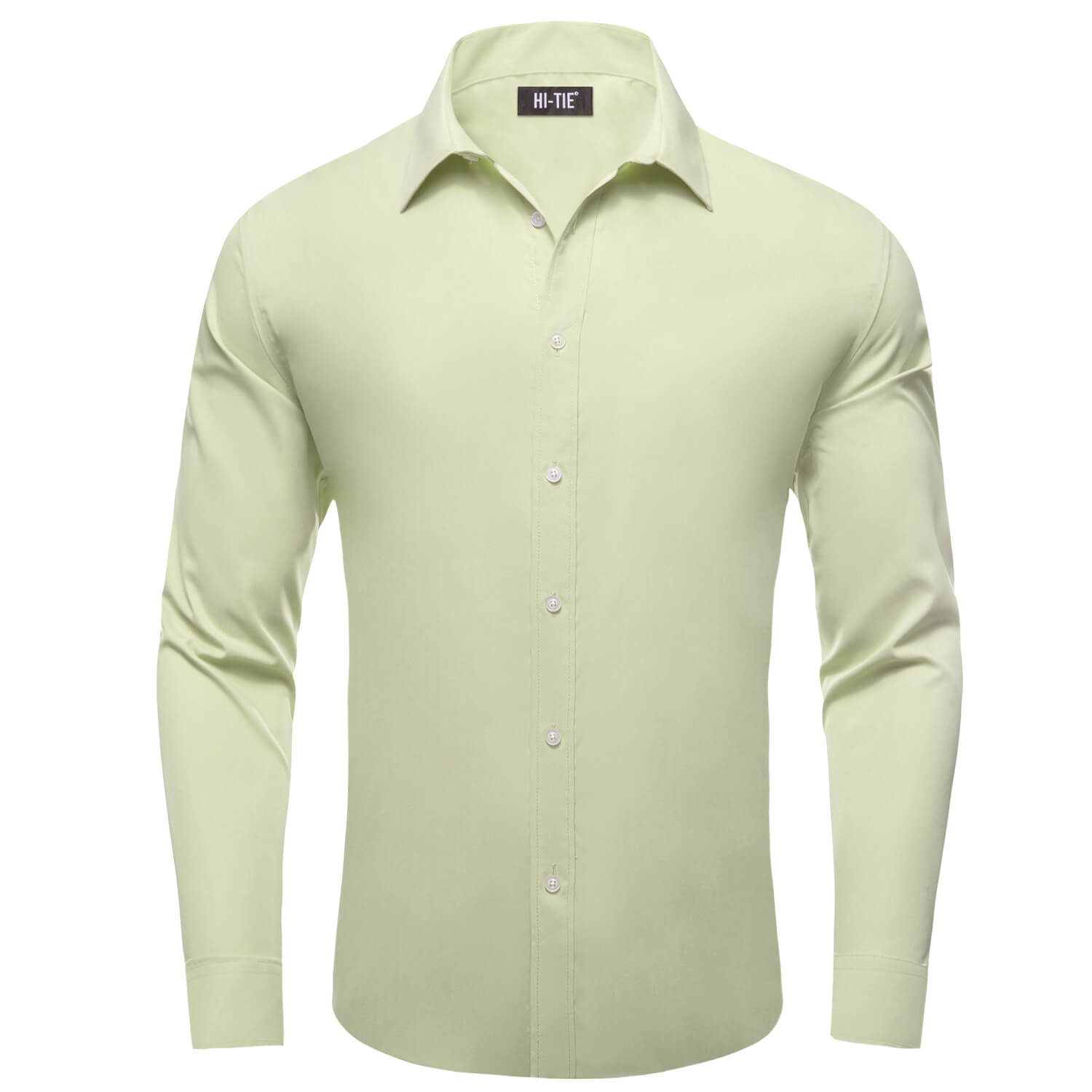 Hi-Tie Long Sleeve Shirt Light Avocado Green Solid Spring Mens Dress Shirt