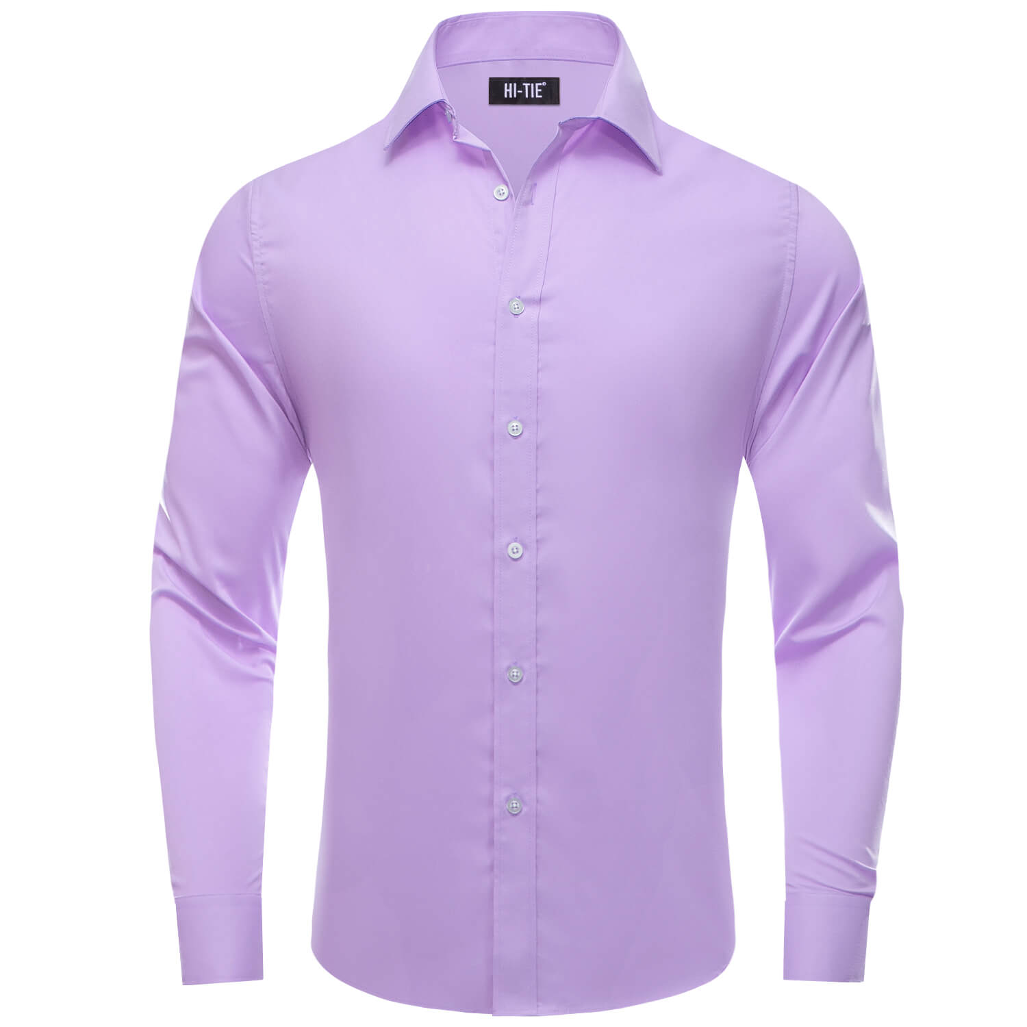 Hi-Tie Lilac Purple Solid Satin Men's Long Sleeve Dress Shirt