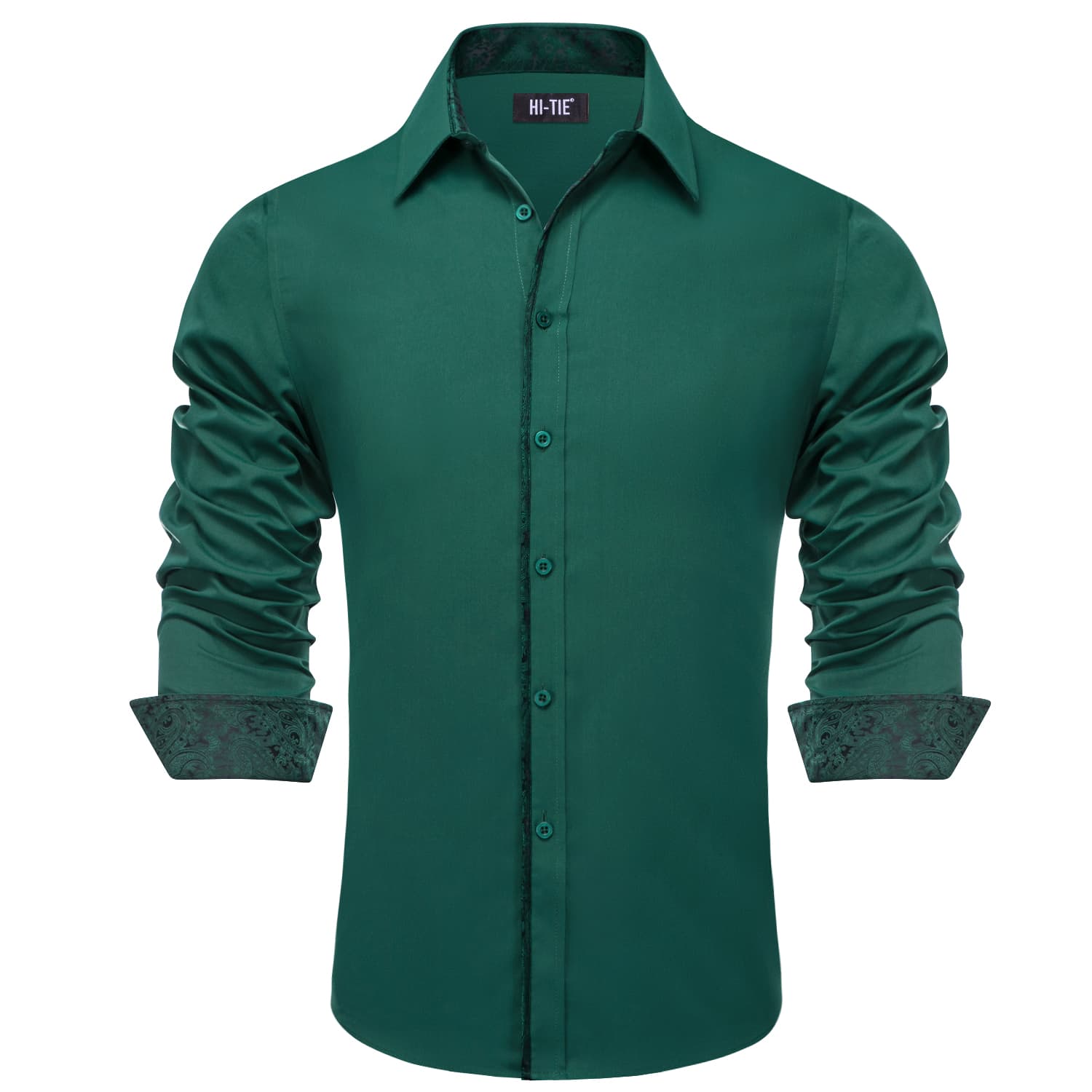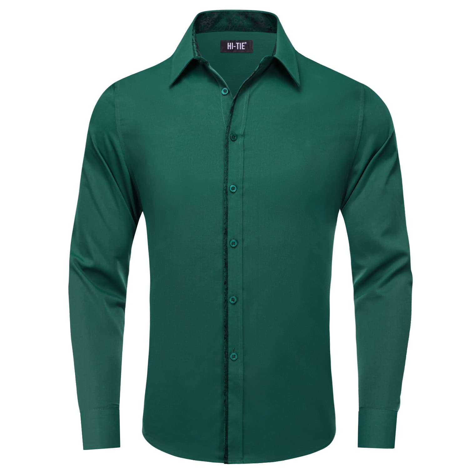 Hi-Tie Dark Green Business Casual Versatile Men's Long Sleeve Shirt