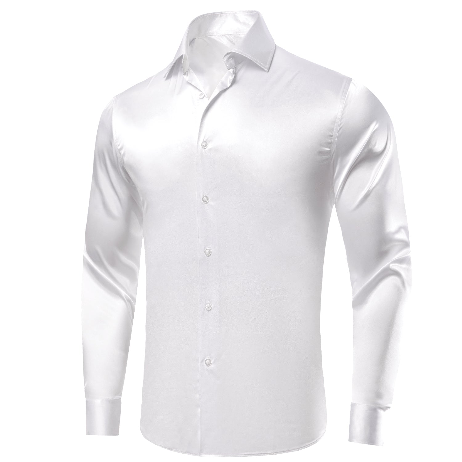 Hi-Tie White Dress Shirt Solid Satin Men's Long Sleeve Dress Shirt