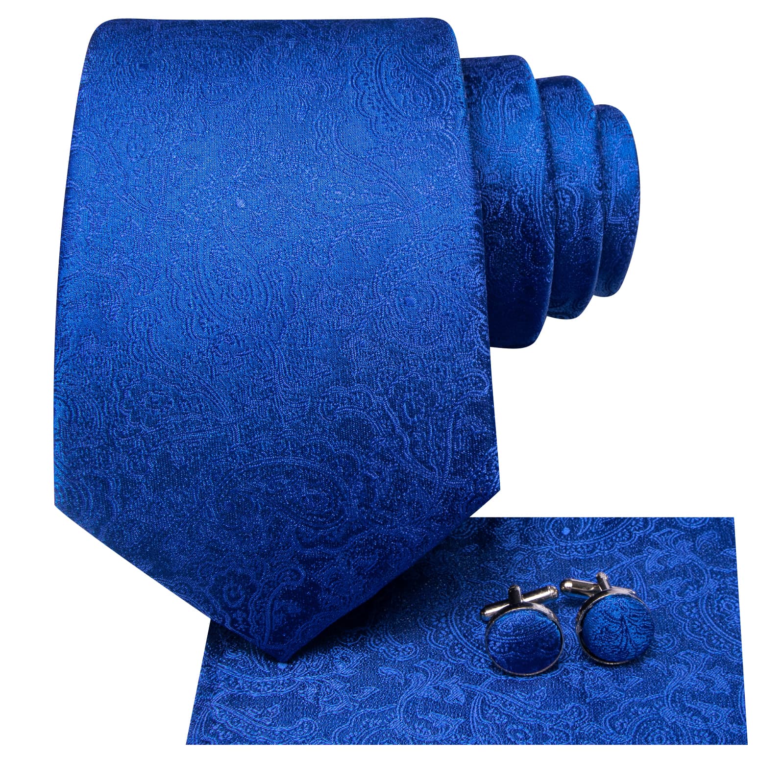 Hi-Tie Royal Blue Paisley Silk Mens Dress Tie Hanky Cufflinks Set