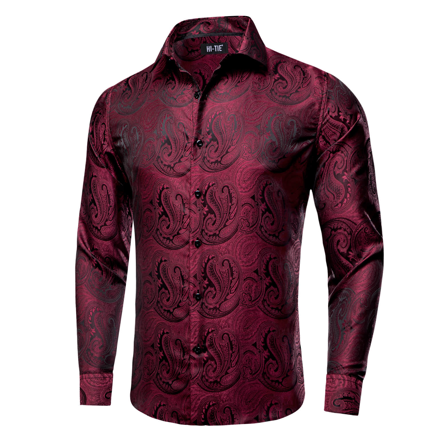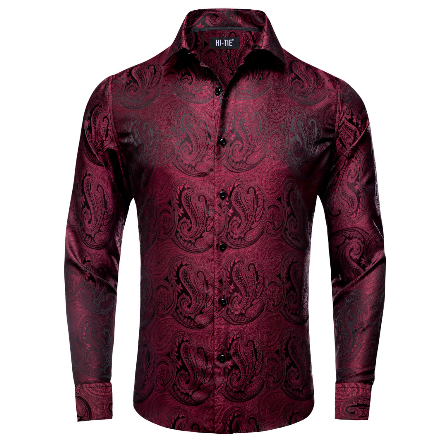 Sold outDark Red Black Paisley Silk Button Down Shirt red paisley shirt
