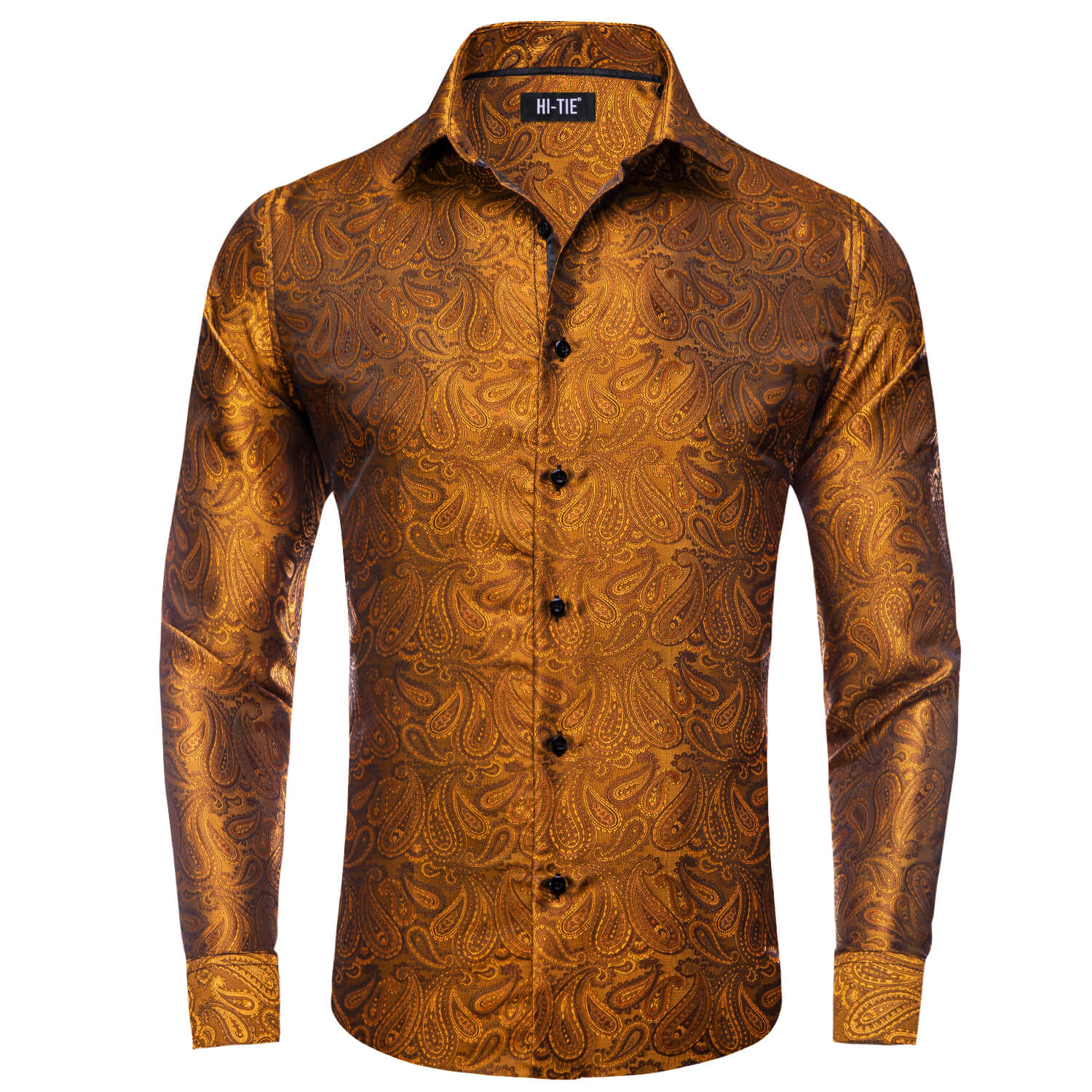 Sold outBronze Brown Paisley Silk Shirt black and gold shirt