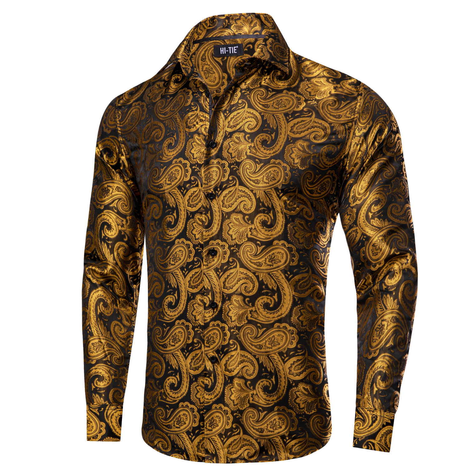 Sold outGold Black Shirt Jacquard Paisley Top Men's Long Sleeve ShirtGold Black Shirt Jacquard Paisley Top Men's Long Sleeve Shirt
