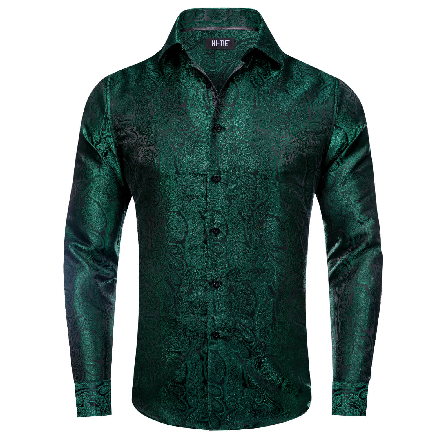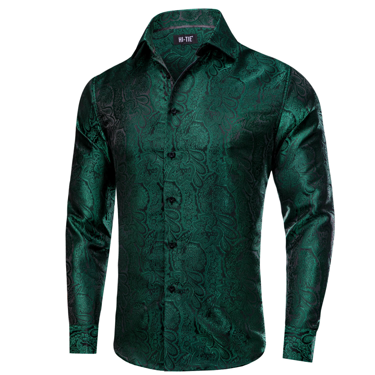 Sold outEmerald Green Black Paisley Silk Men's Long Sleeve Shirt CasualEmerald Green Black Paisley Silk Men's Long Sleeve Shirt Casual
