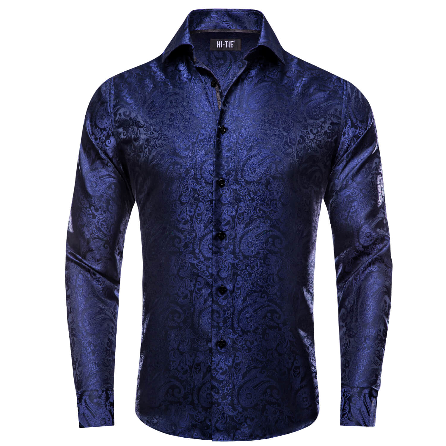 Sold outNavy Blue Paisley Silk Men's Long Sleeve Shirt Formal WeddingNavy Blue Paisley Silk Men's Long Sleeve Shirt Formal Wedding