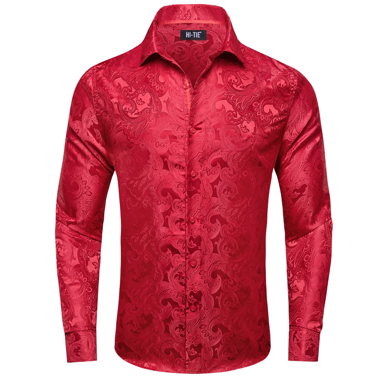 Hi-Tie White Paisley Wedding Silk Mens Long Sleeve ShirtHi-Tie White Paisley Wedding Silk Mens Long Sleeve Shirt