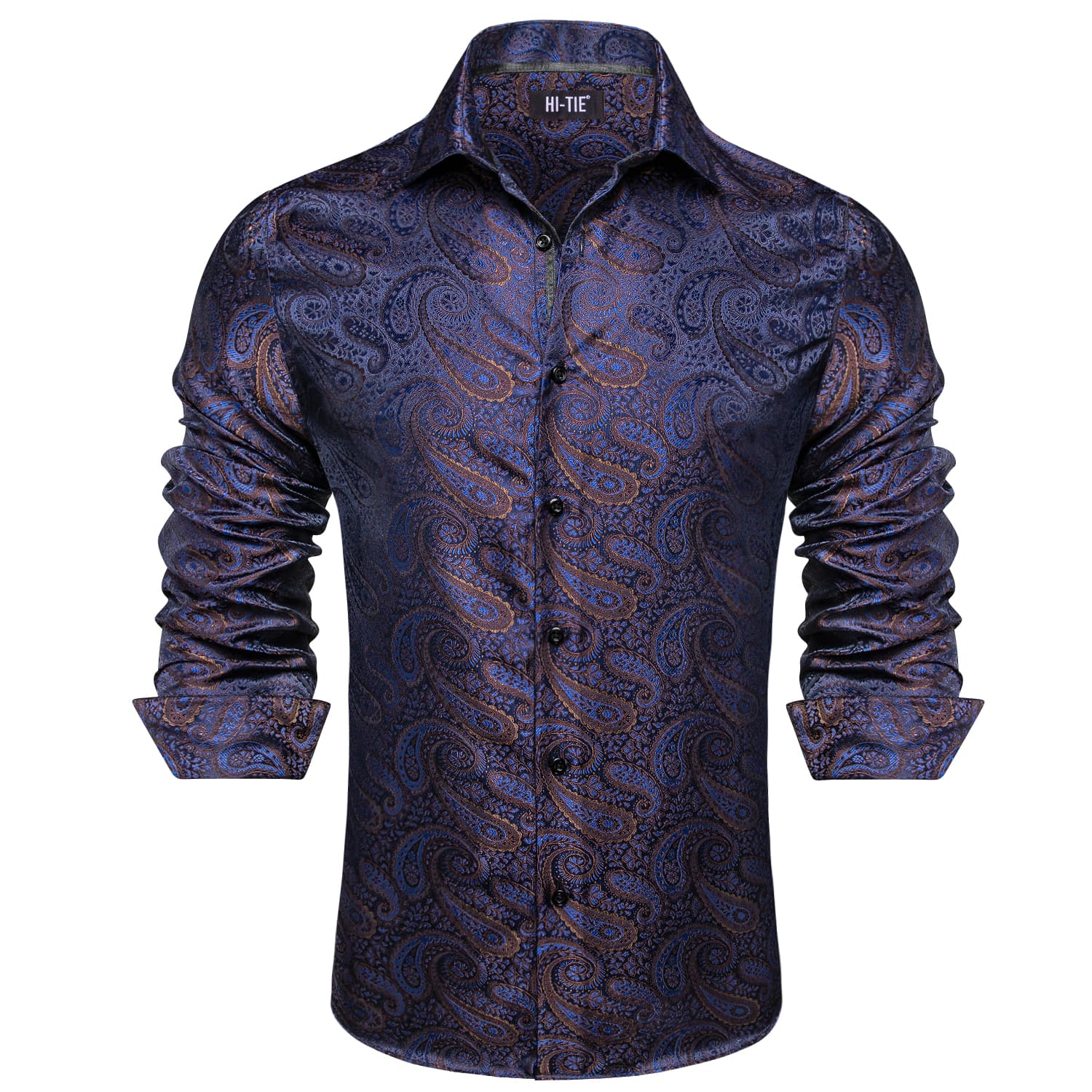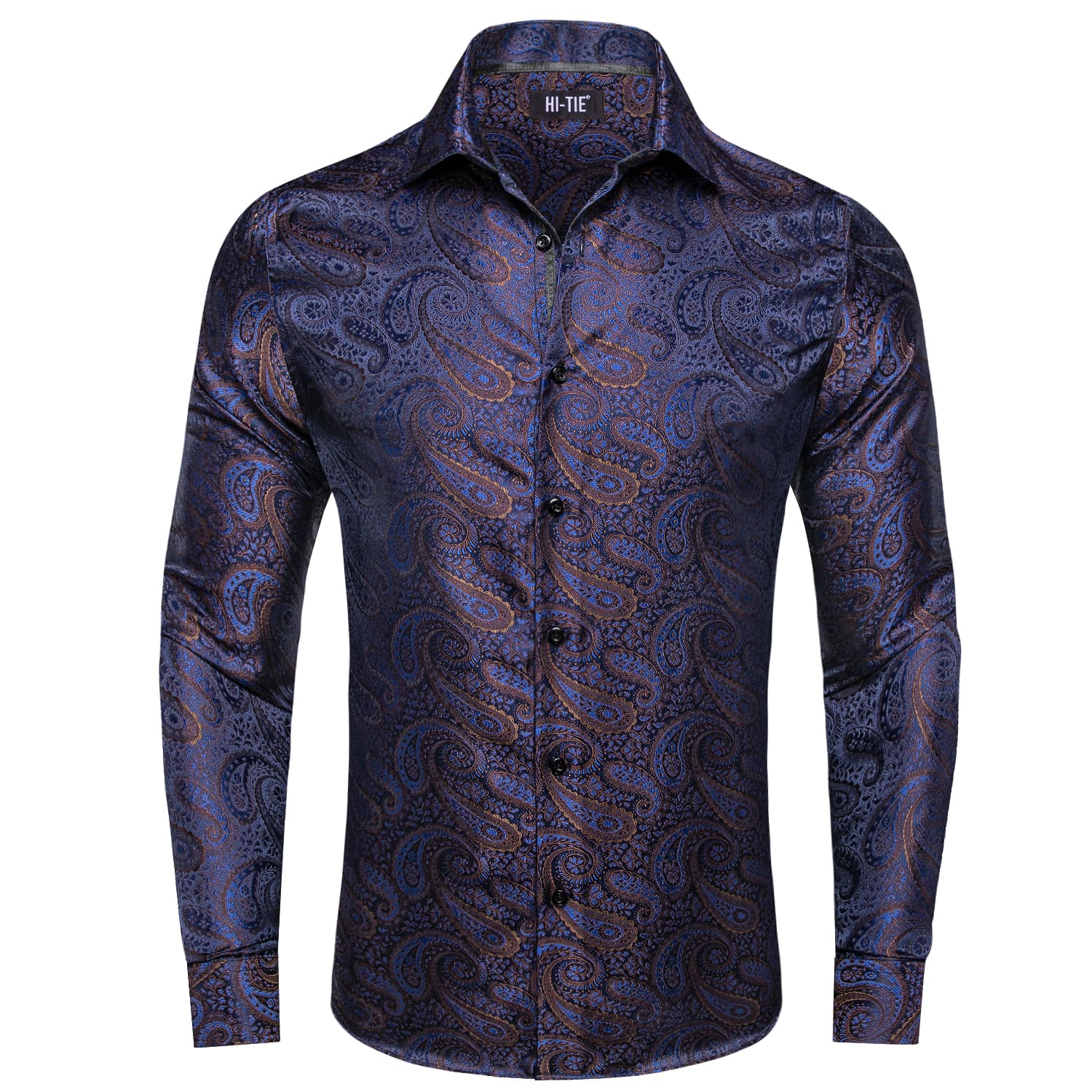 Sold out Blue Black Shirt Jacquard Paisley Top Men's Long Sleeve Shirt Blue Black Shirt Jacquard Paisley Top Men's Long Sleeve Shirt