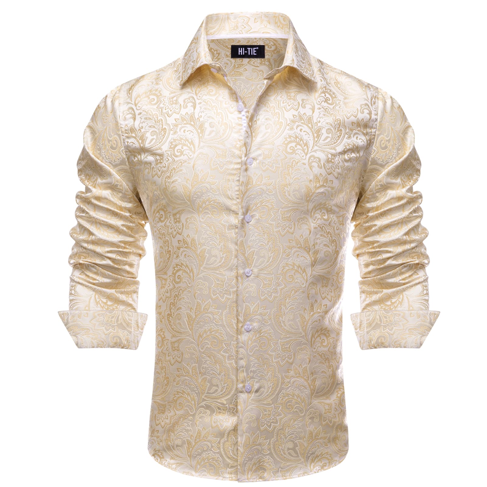 Sold outmens paisley shirts Golden Shirt Beige Silver Paisley Silk Men's Long Sleeve Shirt