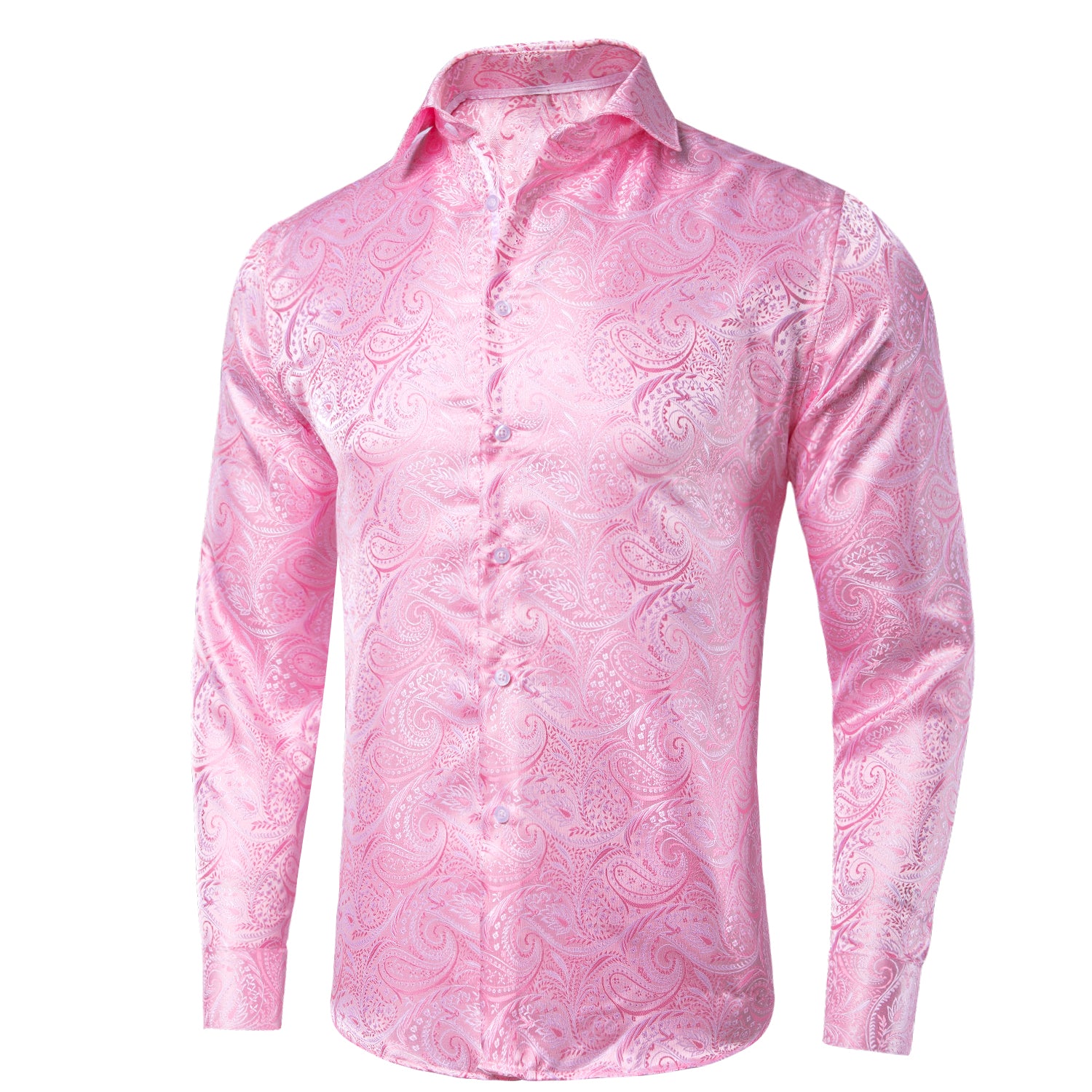 blush pink men's dress shirtBlush Pink Men Long Sleeve Paisley Shirt