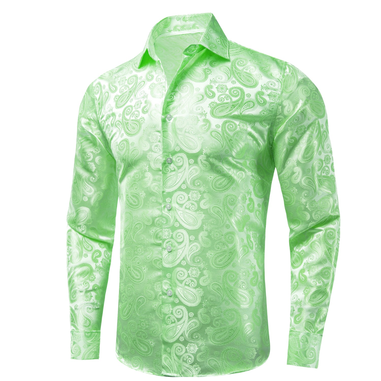 Sold outGrass Green Paisley Silk Men's Long Sleeve Shirt CasualGrass Green Paisley Silk Men's Long Sleeve Shirt Casual