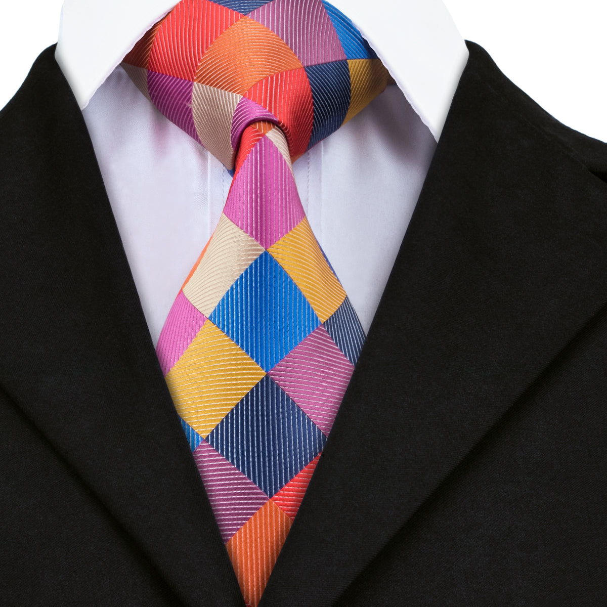 Men's Necktie Colorful Plaid Tie Pocket Square Cufflinks Set Men's Necktie Colorful Plaid Tie Pocket Square Cufflinks Set