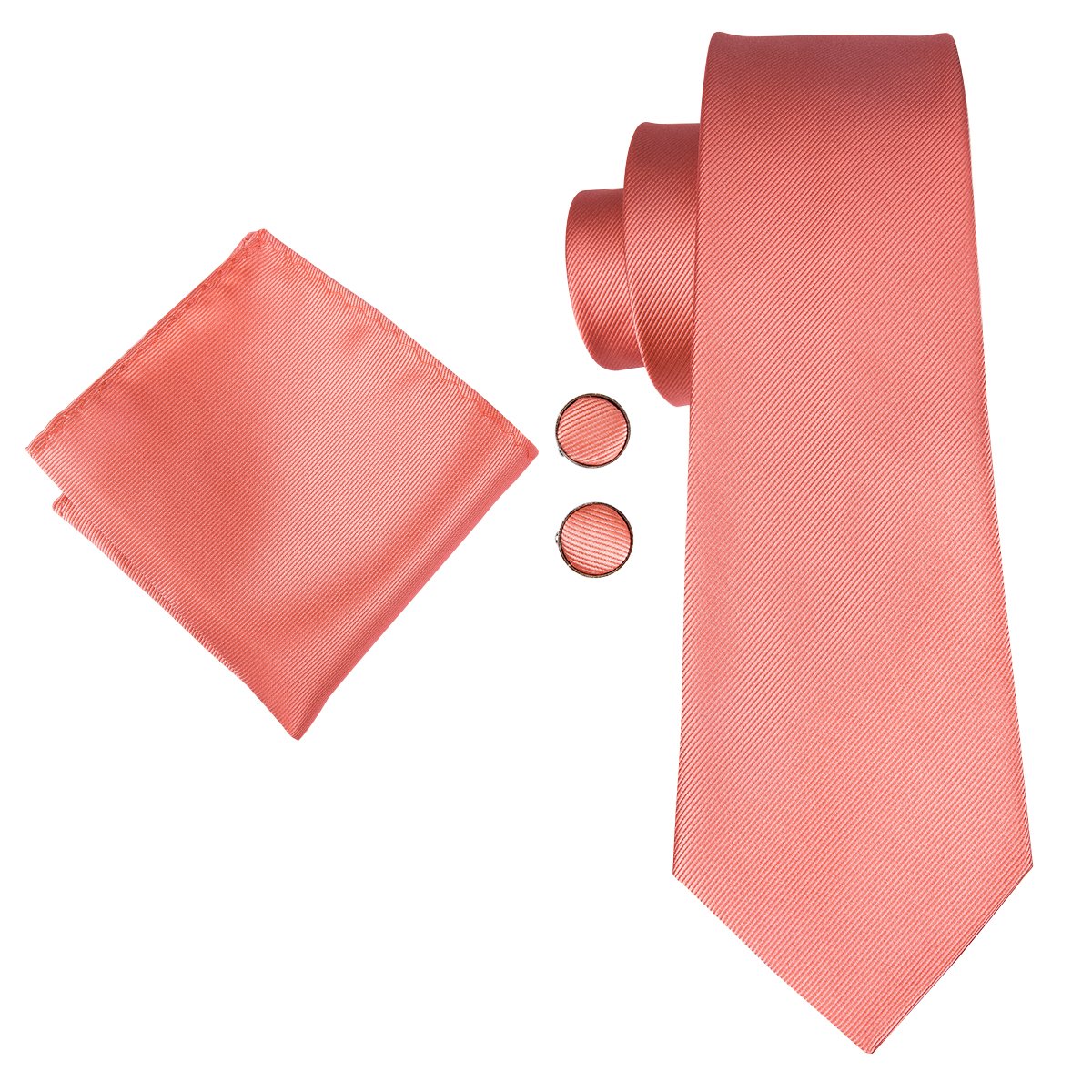 Coral solid Tie Handkerchief Cufflinks Set