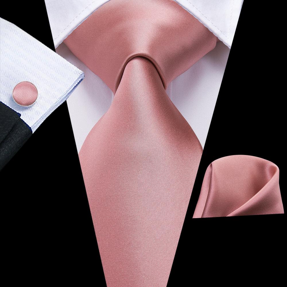 Hi-Tie Wedding Solid Pink Men's Necktie Pocket Square Cufflinks Set