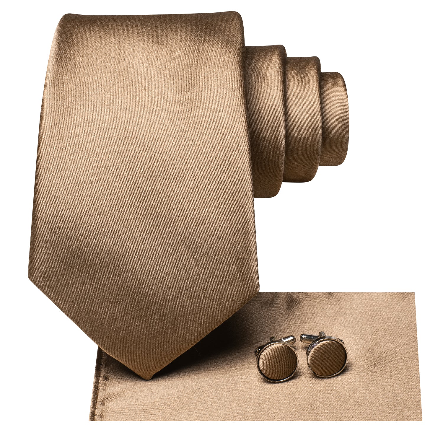 Hi-Tie Tan Brown Necktie Solid Silk Tie Pocket Square Cufflinks Set