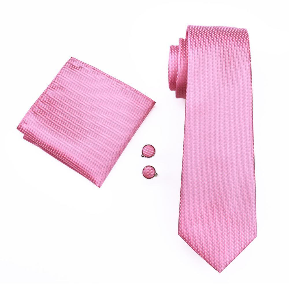 Hi-Tie Pink Solid Silk Jacquard Men's Tie Pocket Square Cufflinks Set