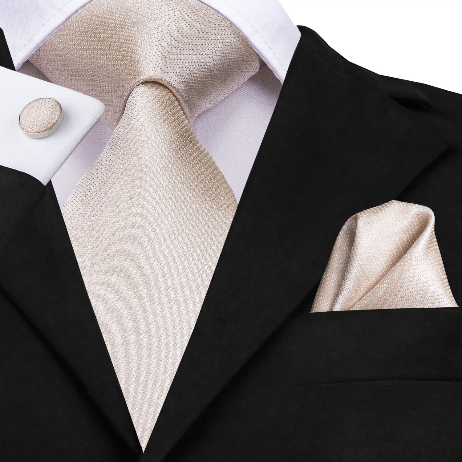 Hi-Tie Silk Ties Ivory Beige Solid Necktie Pocket Square Cufflinks Set
