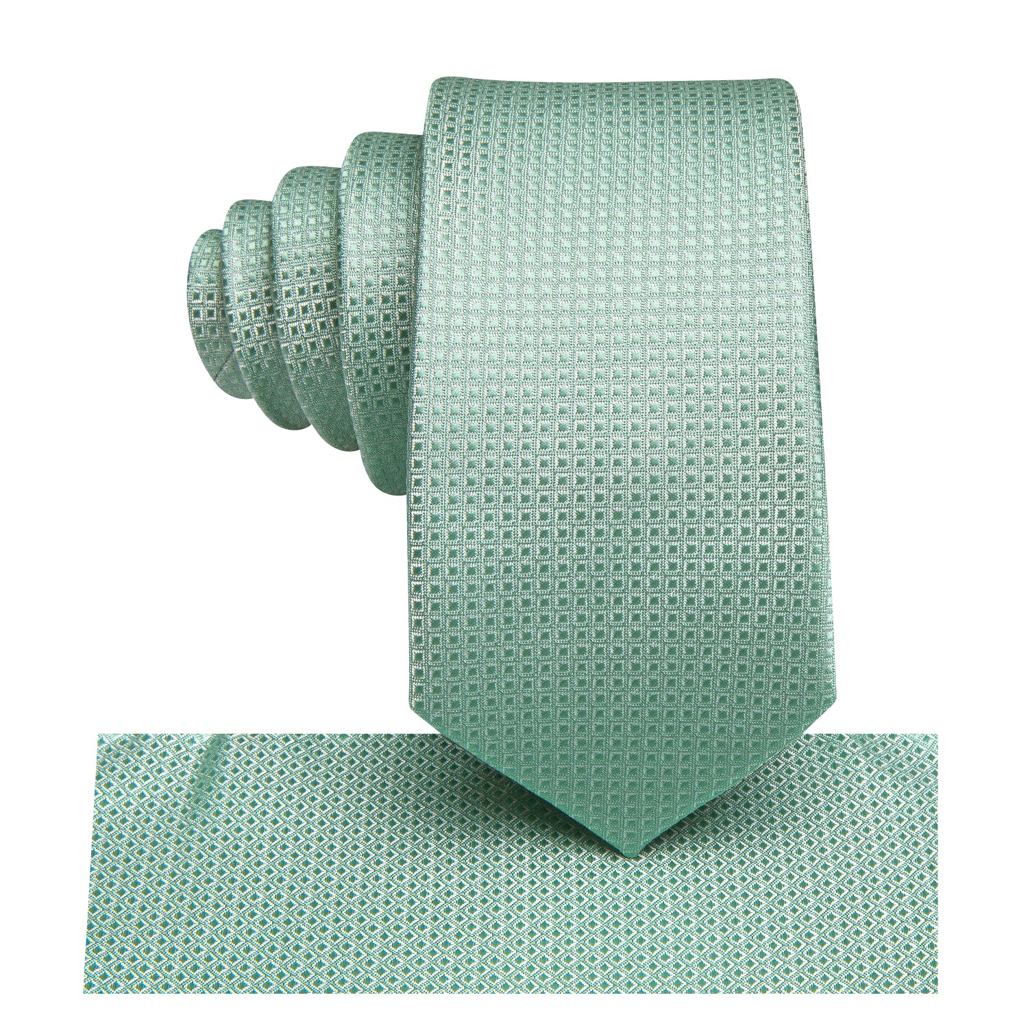 Mint Green Plaid Boys Tie Pocket Square 6cm