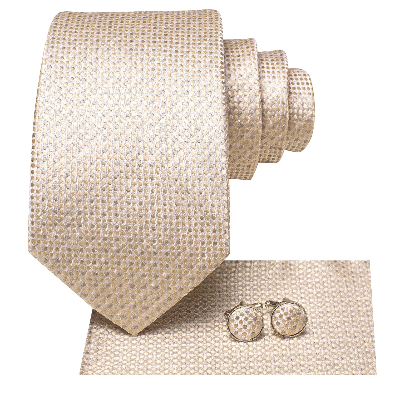 Hi-Tie Champagne Dot Silk Necktie Mens Tie Pocket Square Cufflinks Set