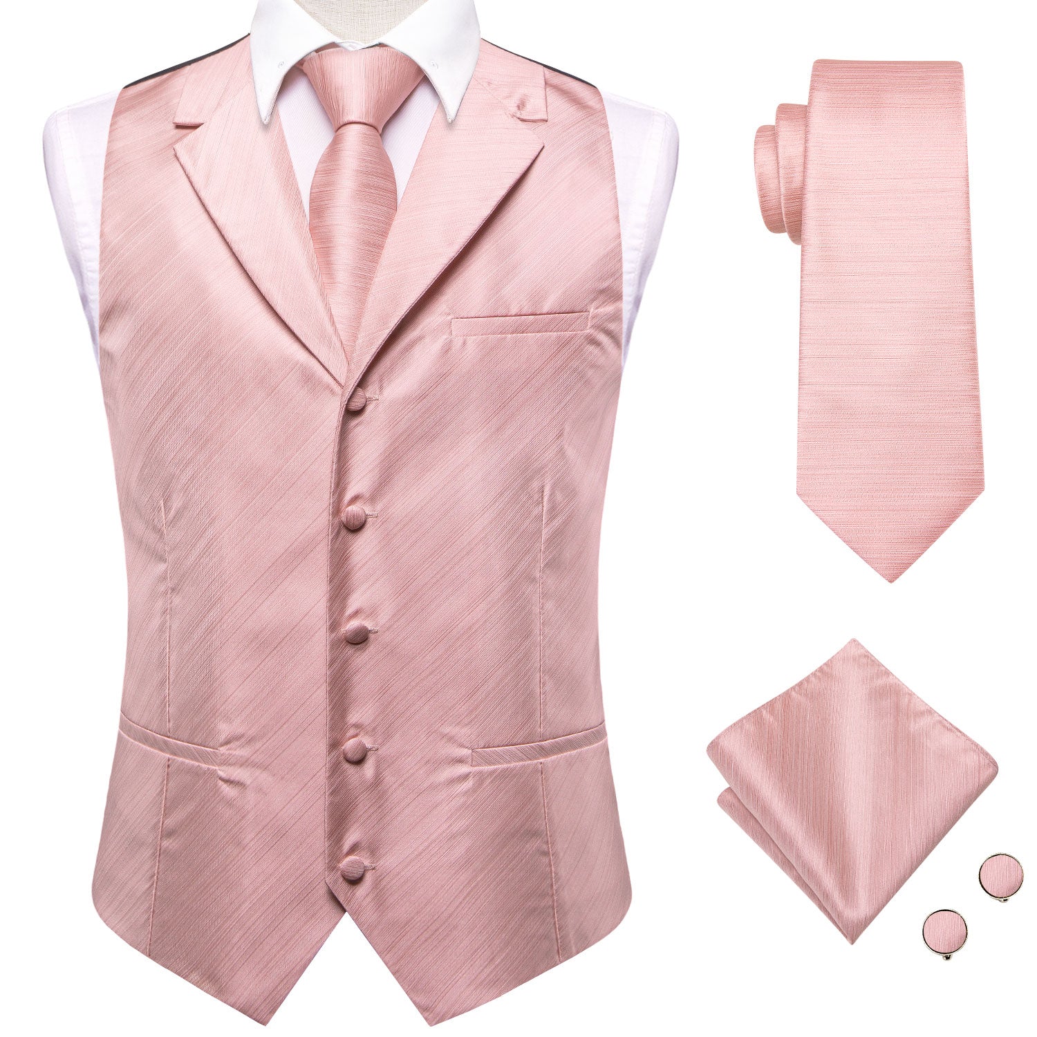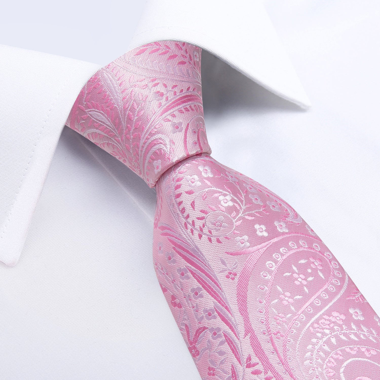 Silver Pink Floral Men's Tie Pocket Square Cufflinks Set