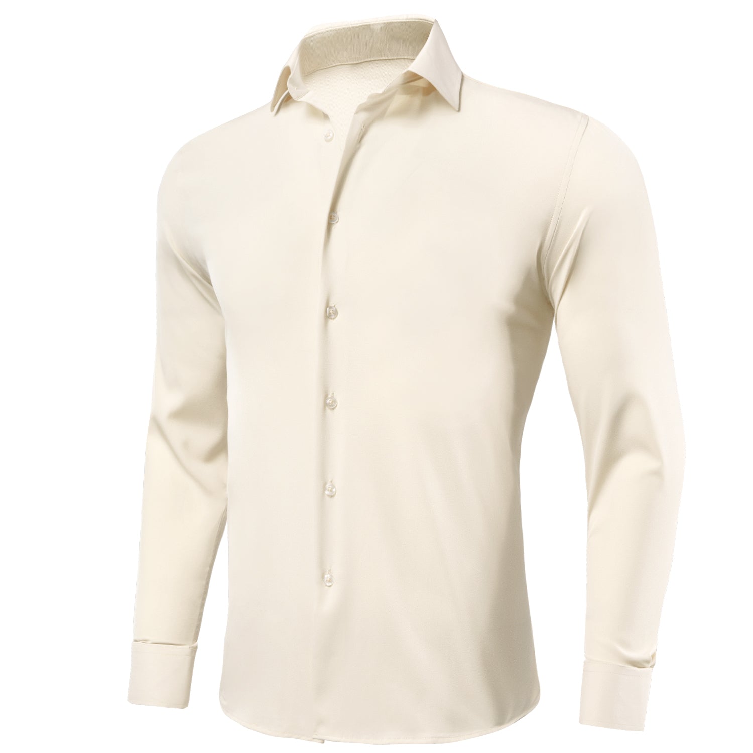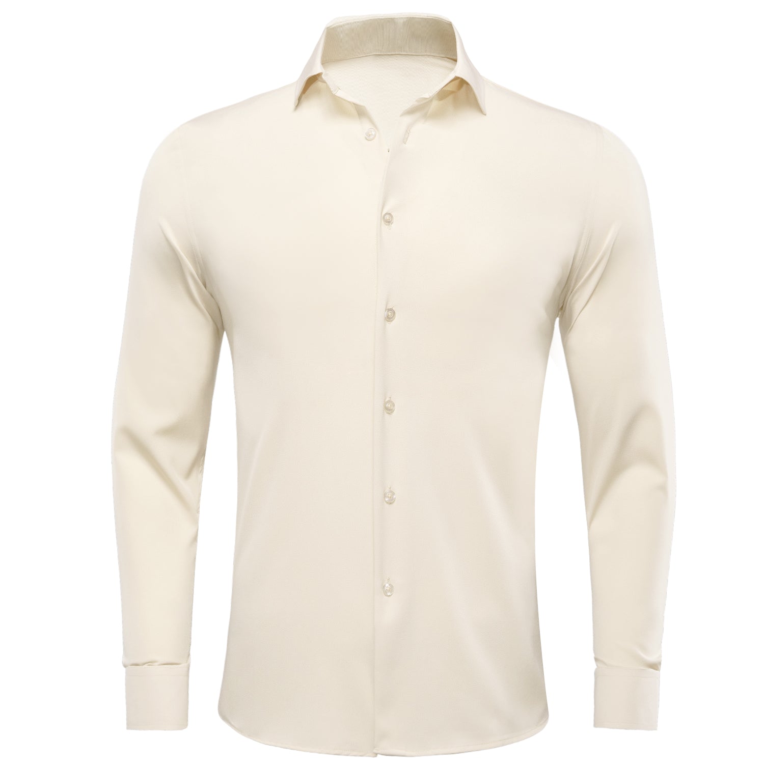 Milk White Solid Stretch Men's Long Sleeve Shirt