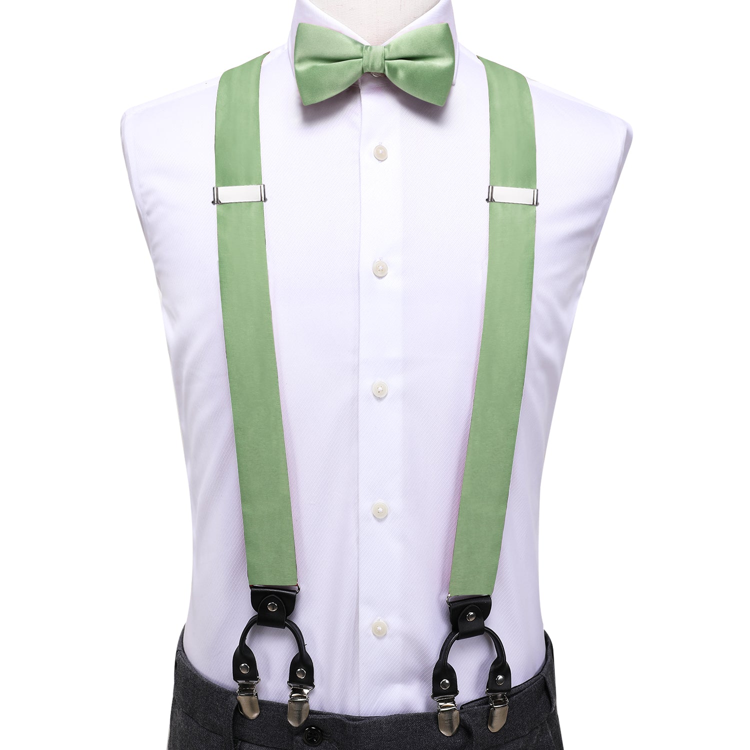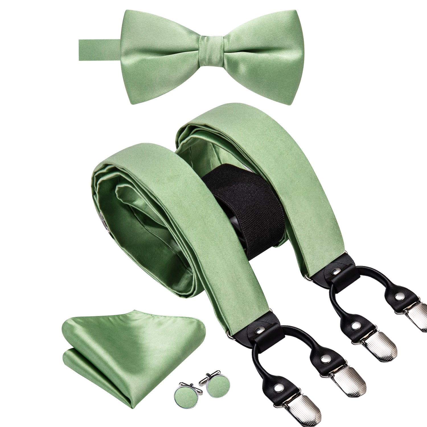 Spring Green Solid Suspender Bowtie Hanky Cufflinks Set